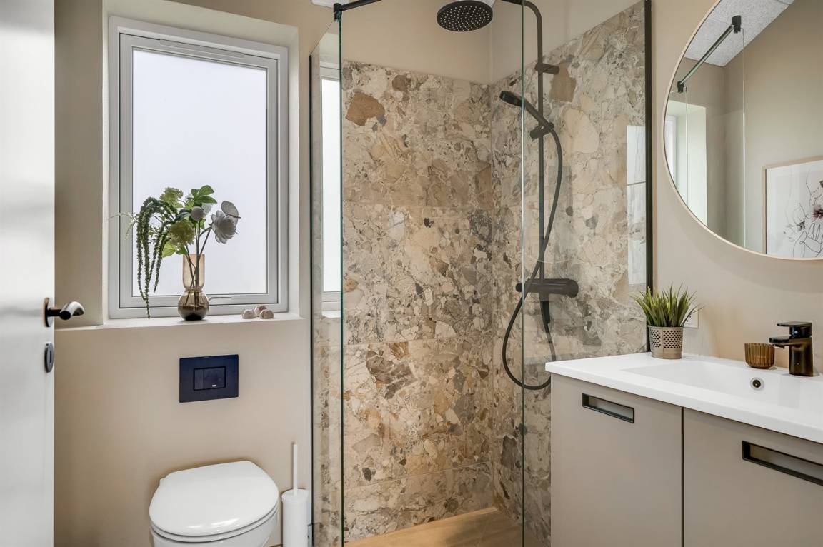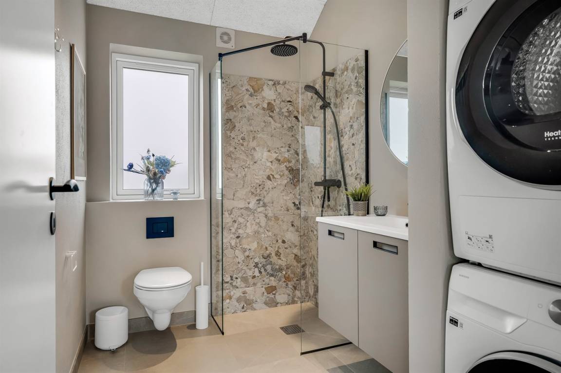 Es gibt drei Bäder mit Fußbodenheizung sowie eine Waschmaschine und einen Wäschetrockner. Zur Unterhaltung stehen in mehreren Räumen Smart-TV, Apple TV und Chromecast zur Verfügung. Dank des schnellen Glasfaser-WLANs kannst du problemlos streamen oder online arbeiten.
