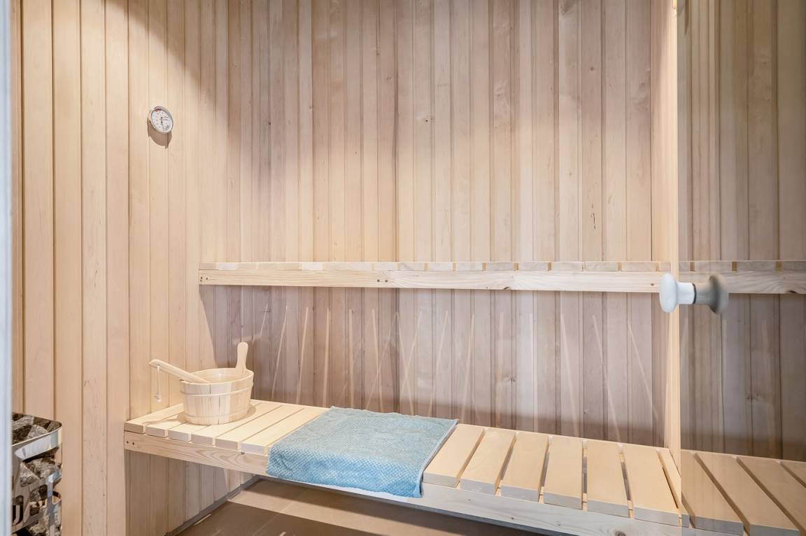 Der Swimmingpool ist auf 24–28 Grad beheizt und bietet das ganze Jahr über die ideellen Möglichkeiten für Spiel und Spaß. Direkt daneben findest du eine Sauna und darüber hinaus steht ein Außen-Whirlpool für sechs Personen zur Verfügung. Es gibt auch einen separaten Aktivitätsraum mit Tischfußball – perfekt für kleine Turniere und gemütliche Abende.