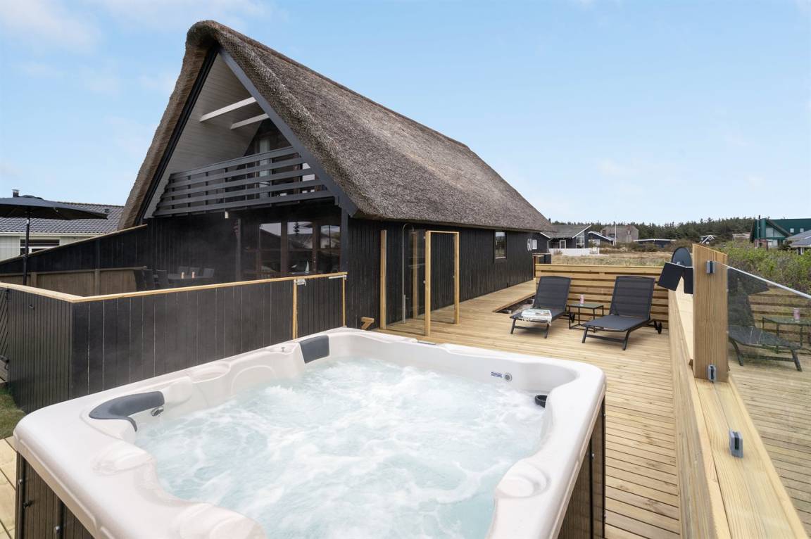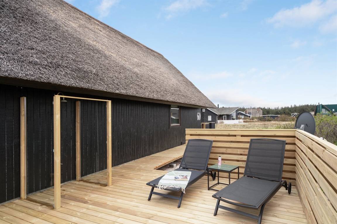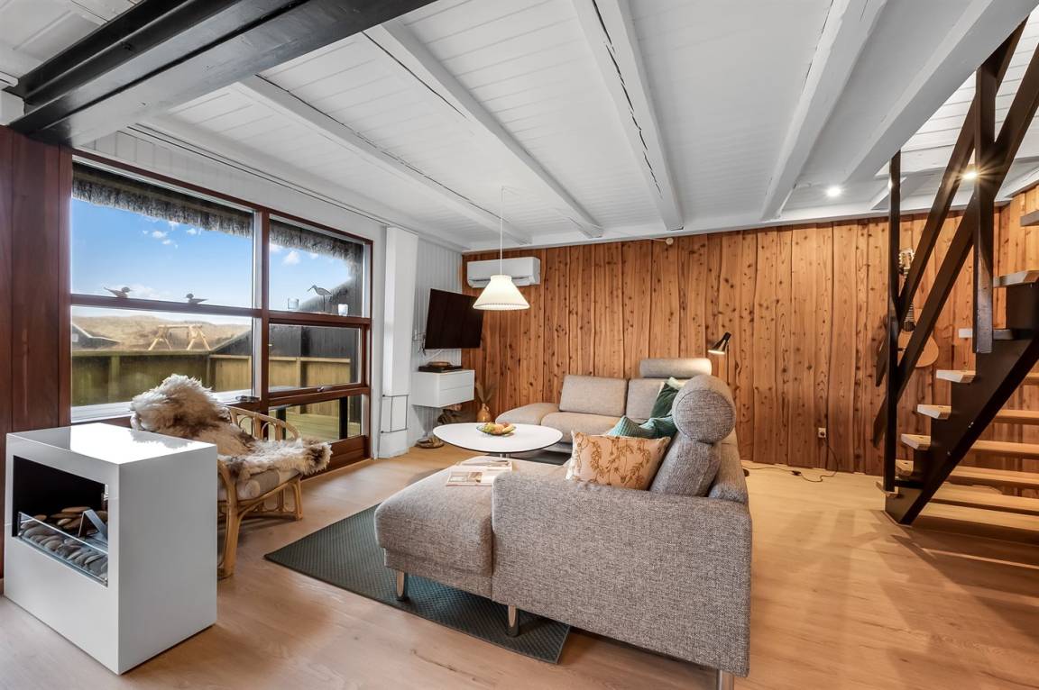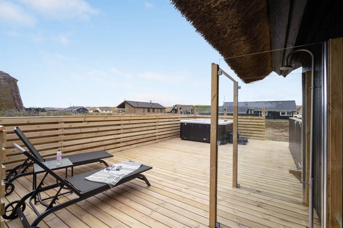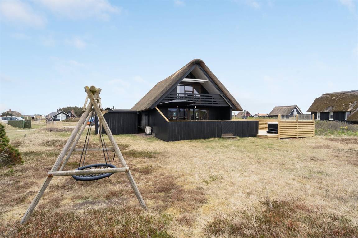 DraußenDie Ferienunterkunft liegt auf einem 1200 m² großen Dünengrundstück. Die Entfernung zum Meer beträgt 150 m. Die nächste Einkaufsmöglichkeit liegt 900 m entfernt. Es stehen sowohl offene als auch überdachte Terrassen zur Verfügung. Davon insgesamt 25 m² geschlossene Terrasse.Balkon im Obergeschoss. Geräteraum. Schaukel. Außendusche. Es steht eine Garage zur Verfügung. Es ist ein Ladestecker für Elektroautos installiert. Parkplatz auf dem Grundstück.
