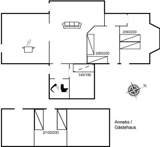 Das Ferienhaus, das sich für 6 Personen eignet, hat eine Wohnfläche von 127 m², wurde 1975 gebaut und 2022 renoviert. Haustiere dürfen nicht mitgebracht werden. Die Ferienunterkunft ist mit einer energiefreundlichen Luft-Luft-Wärmepumpe ausgestattet und es ist ein Kaminofen vorhanden. Die große Küche mit Essbereich ist u. a. mit Kühl-/Gefrierschrank ausgestattet. Haustiere dürfen nicht mitgebracht werden.