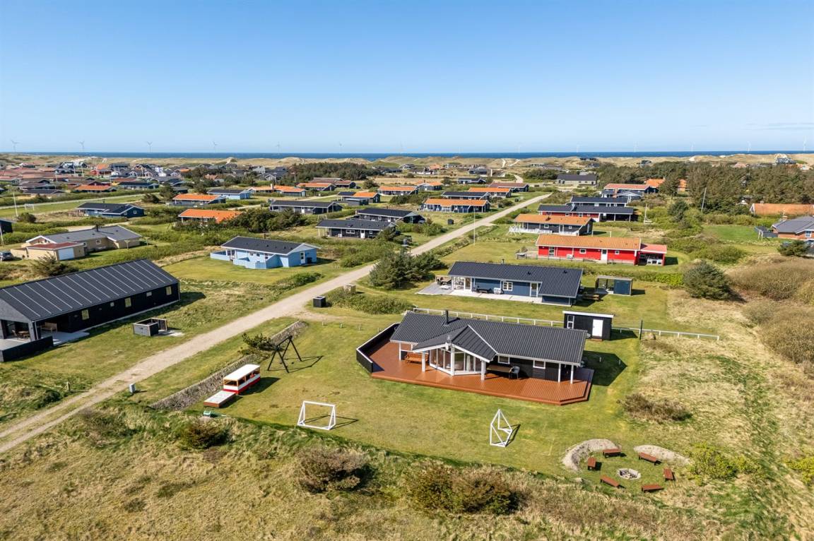 DraußenDie Ferienunterkunft liegt auf einem 1200 m² großen Dünengrundstück. Die Entfernung zum Meer beträgt 650 m. Die nächste Einkaufsmöglichkeit liegt 300 m entfernt. Es steht ein offenes Terrassenareal zur Verfügung. Außerdem gibt es überdachte Terrasse. Schaukel. Sandkasten. Kinderspielhaus. Fußballtor.Lagerfeuerstelle. Es ist ein Ladestecker für Elektroautos installiert. Ladestecker Typ 2. Parkplatz auf dem Grundstück.