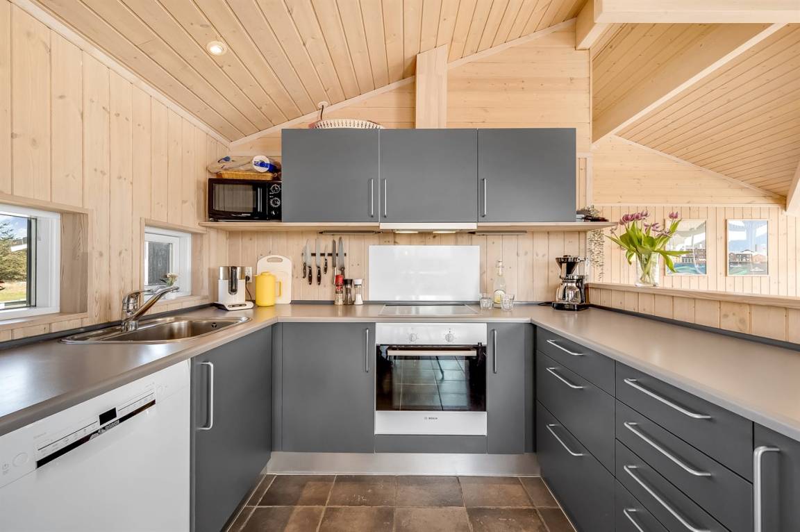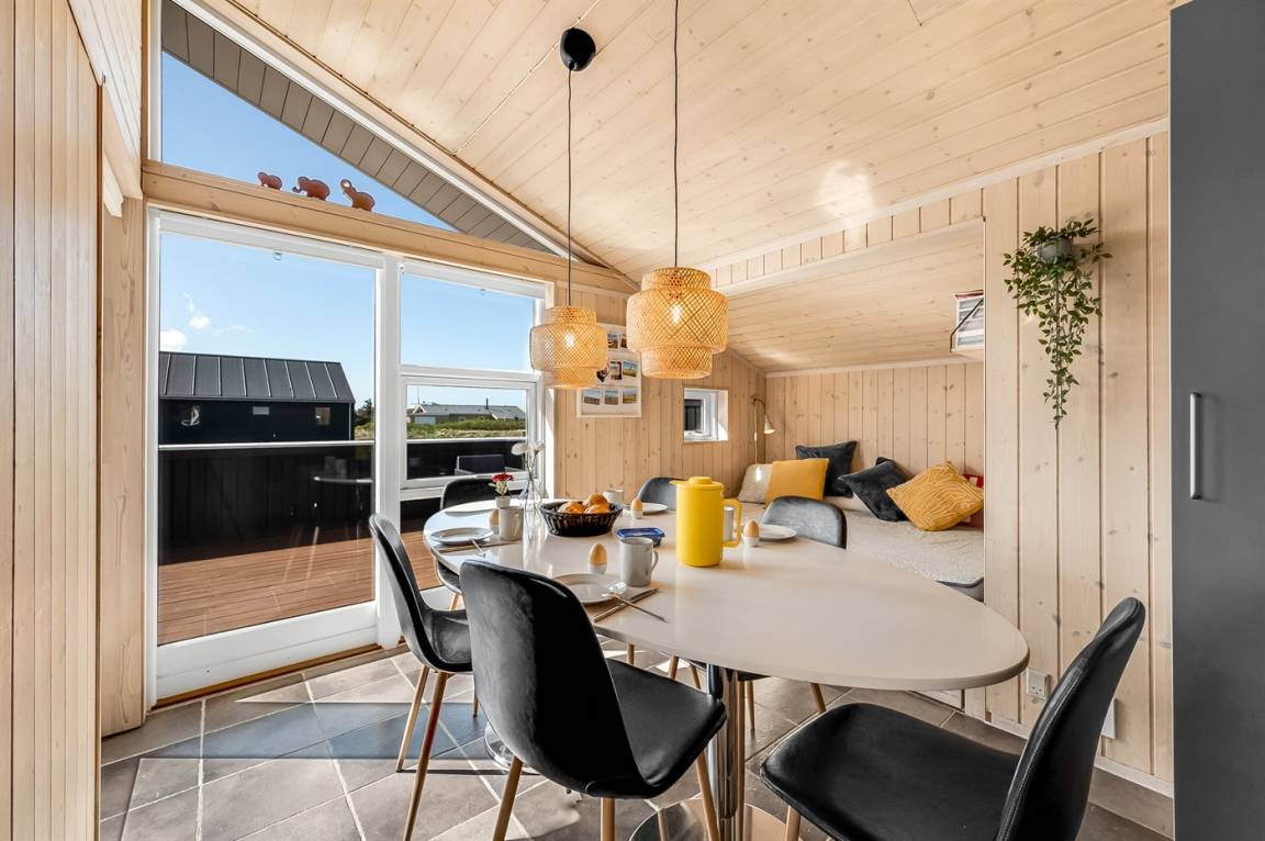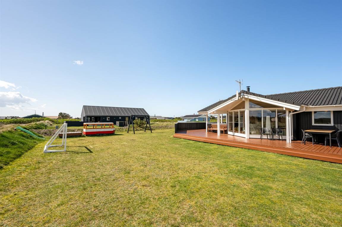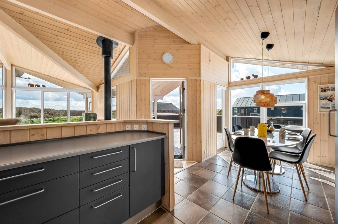 Dieses gut ausgestattete Ferienhaus liegt auf einem sehr großen Naturgrundstück. Die Innenräume des Ferienhauses sind durch die großen Fenster sehr hell – unabhängig von der Tageszeit. Das Haus ist gut und funktional eingerichtet und bietet Platz für 6 Personen. Das Ferienhaus lädt zu entspannenden und geselligen Stunden ein: gemeinsam gutes Essen kochen, ein gutes Buch lesen oder die Wärme und das Knistern des prasselnden Kaminfeuers genießen. Eine kleine Besonderheit ist der Spielzug, der zum Haus gehört. Der Zug ähnelt der Lokalbahn "Lemvigbanen", die durch die Region fährt.