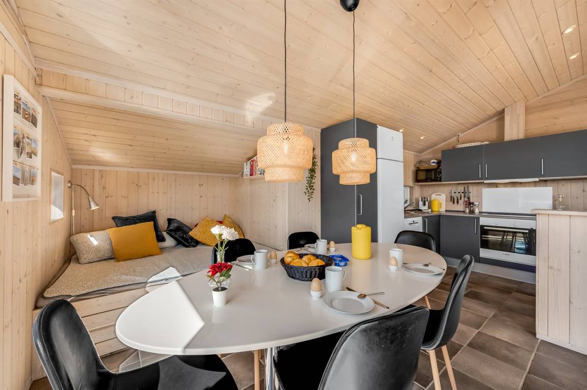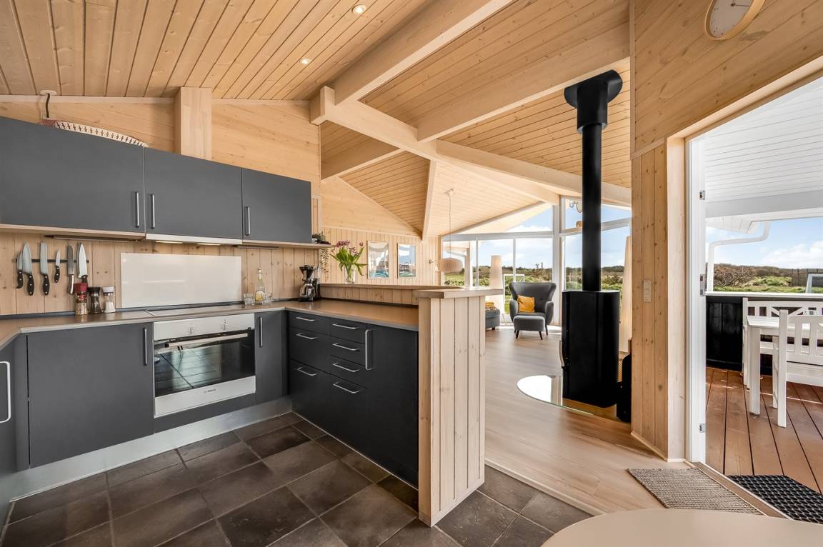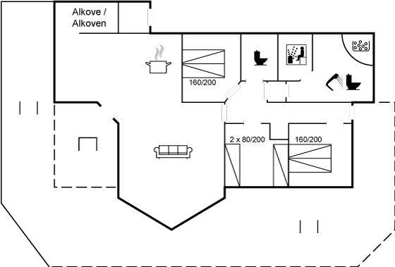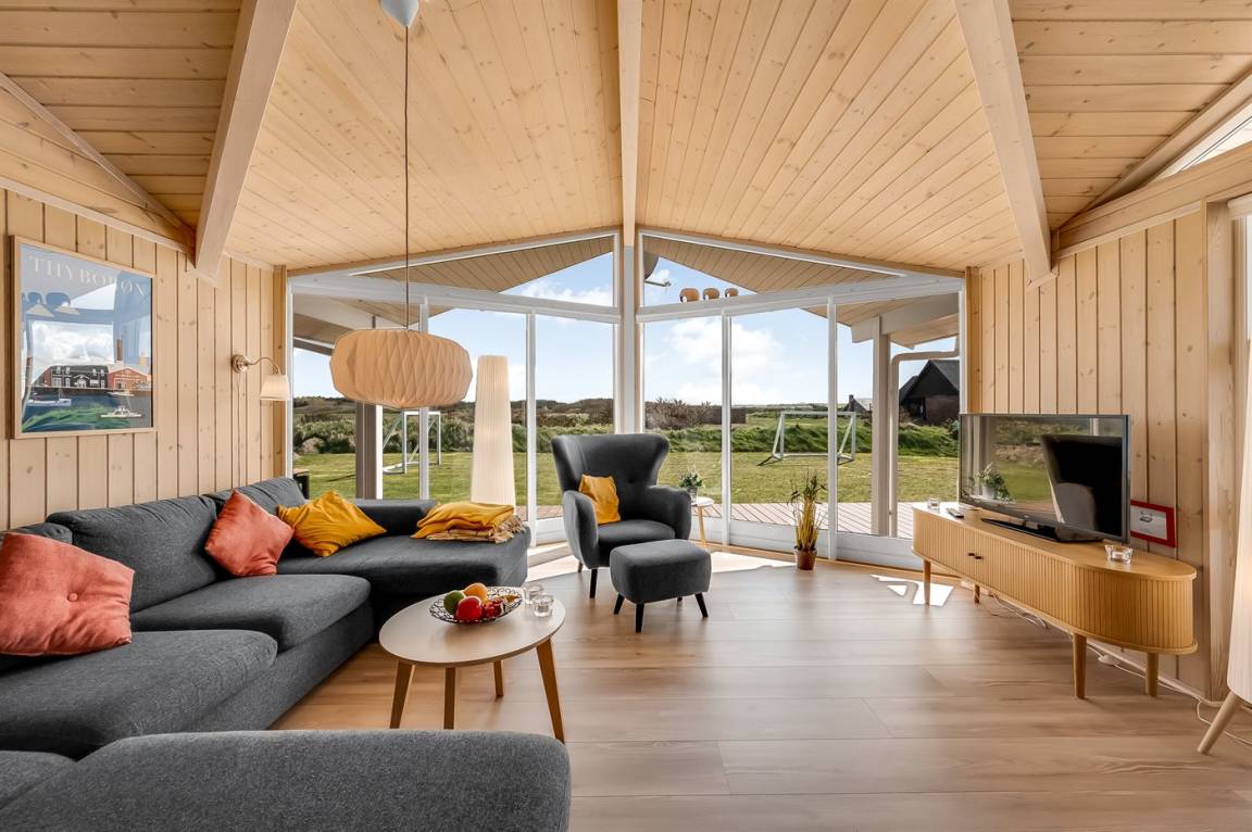 Dieses gut ausgestattete Ferienhaus liegt auf einem sehr großen Naturgrundstück. Die Innenräume des Ferienhauses sind durch die großen Fenster sehr hell – unabhängig von der Tageszeit. Das Haus ist gut und funktional eingerichtet und bietet Platz für 6 Personen. Das Ferienhaus lädt zu entspannenden und geselligen Stunden ein: gemeinsam gutes Essen kochen, ein gutes Buch lesen oder die Wärme und das Knistern des prasselnden Kaminfeuers genießen. Eine kleine Besonderheit ist der Spielzug, der zum Haus gehört. Der Zug ähnelt der Lokalbahn "Lemvigbanen", die durch die Region fährt.