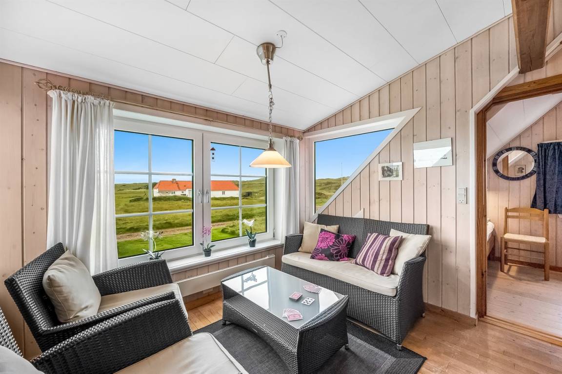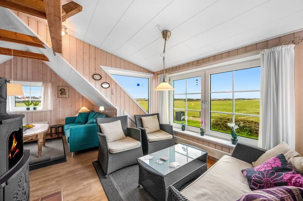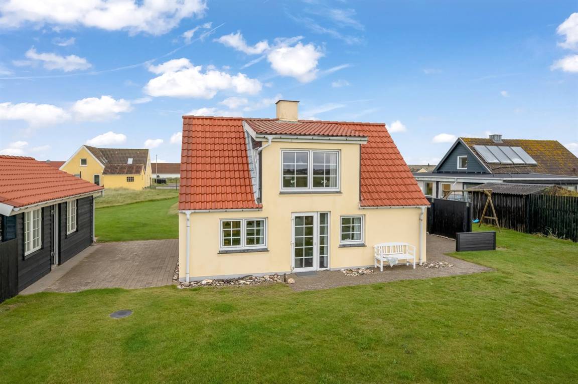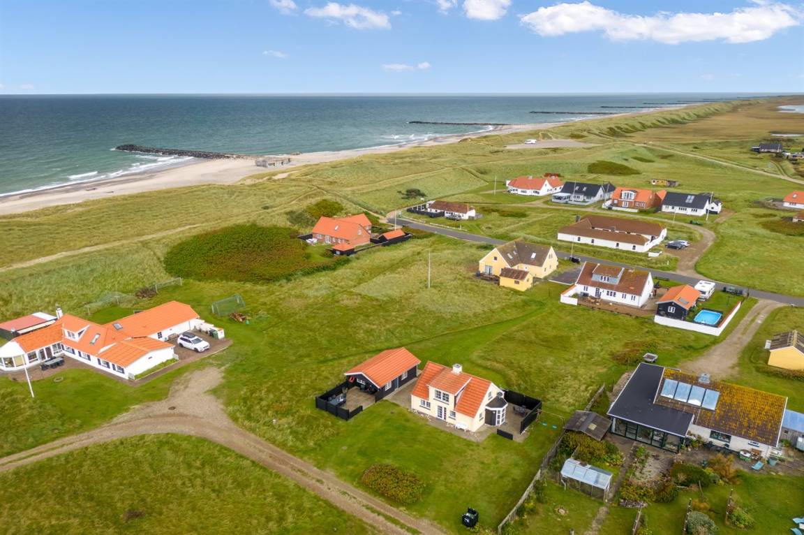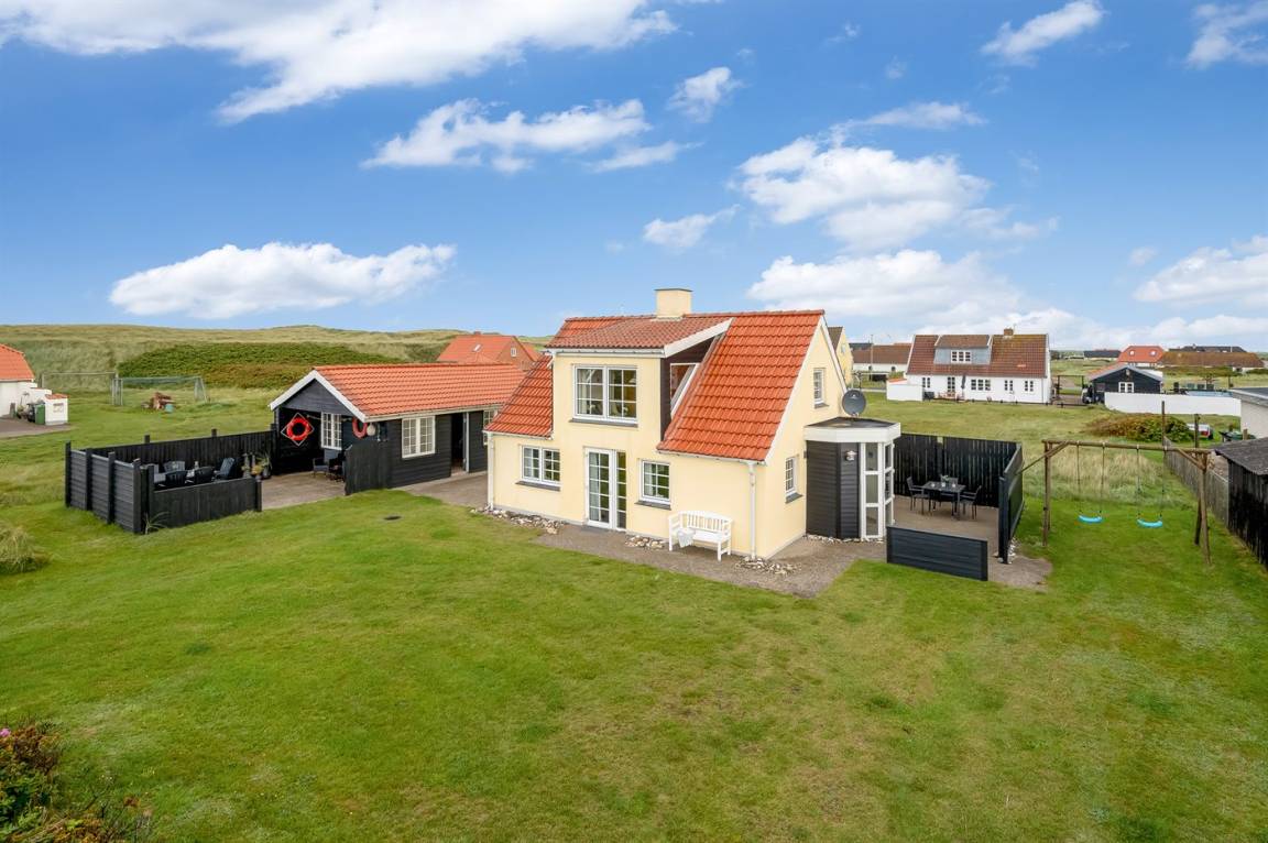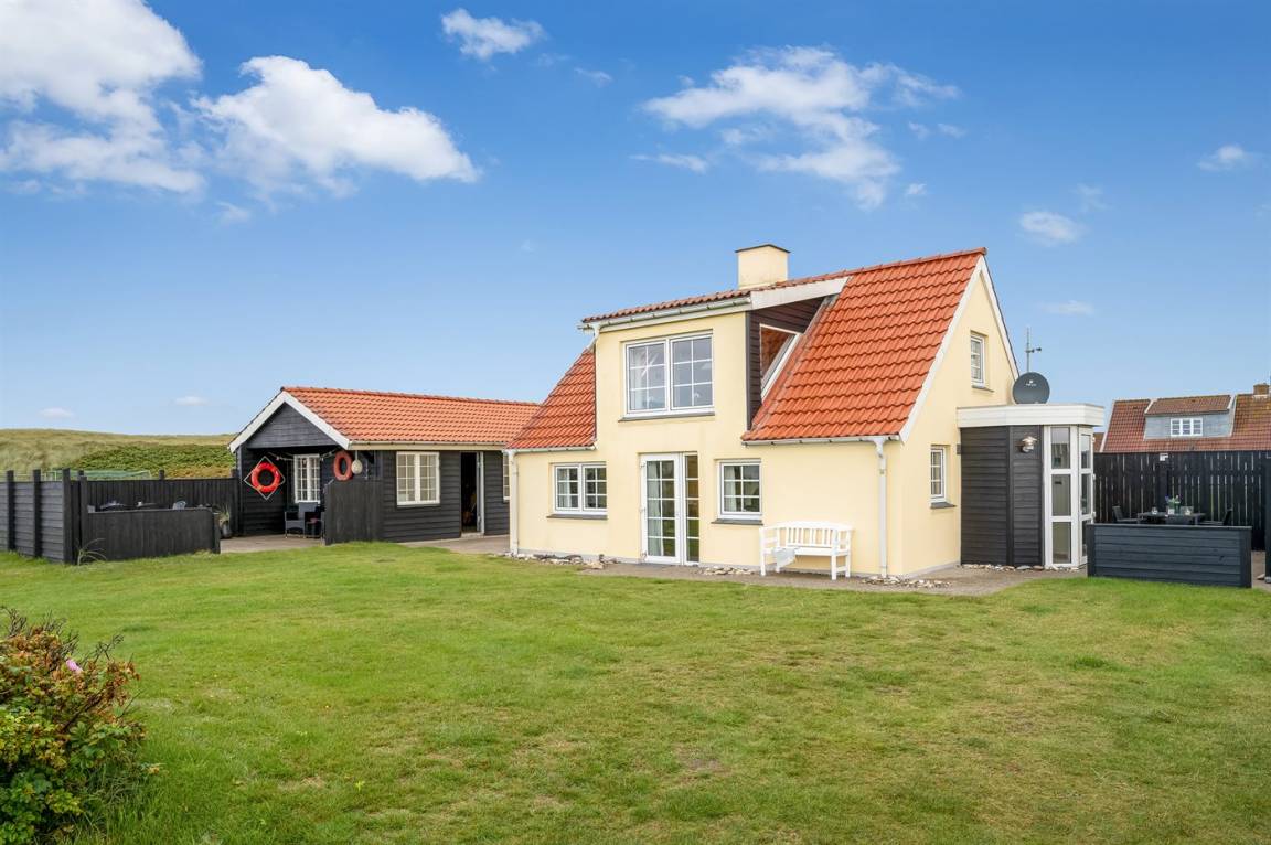 Nur 100 m von der Nordsee liegt dieses gemütliche ältere 2-stöckige Ferienhaus aus Stein, 1999 und 2008 teilweise renoviert, auf einem Naturgrundstück. Schöne Terrasse mit Gartenmöbeln. Holzwände, -decken und Teppichböden, jedoch Holzböden im Wohnzimmer und im Obergeschoss. Hier ist das Wohnzimmer zum Teil niedrig wegen den sichtbaren Deckenbalken. Badezimmer mit Duschnische und Klinkerboden. Küche mit Geschirrspüler, Mikrowelle und Tiefkühlgerät. Das Wohnzimmer im Erdgeschoss enthält Kaminofen. Im Obergeschoss enthält das Wohnzimmer Kaminofen, Stereoanlage mit CD-Spieler, DVD-Spieler und TV mit digitalem Satellitenanschluss. Ferner kostenlose, kabellose Internetverbindung vorhanden (Computer ist mitzubringen). Kinderbett, Sandkasten und Schaukel für die Kinder. Gute Angelmöglichkeiten in der Gegend.