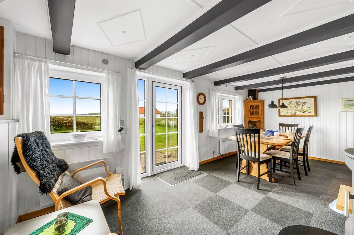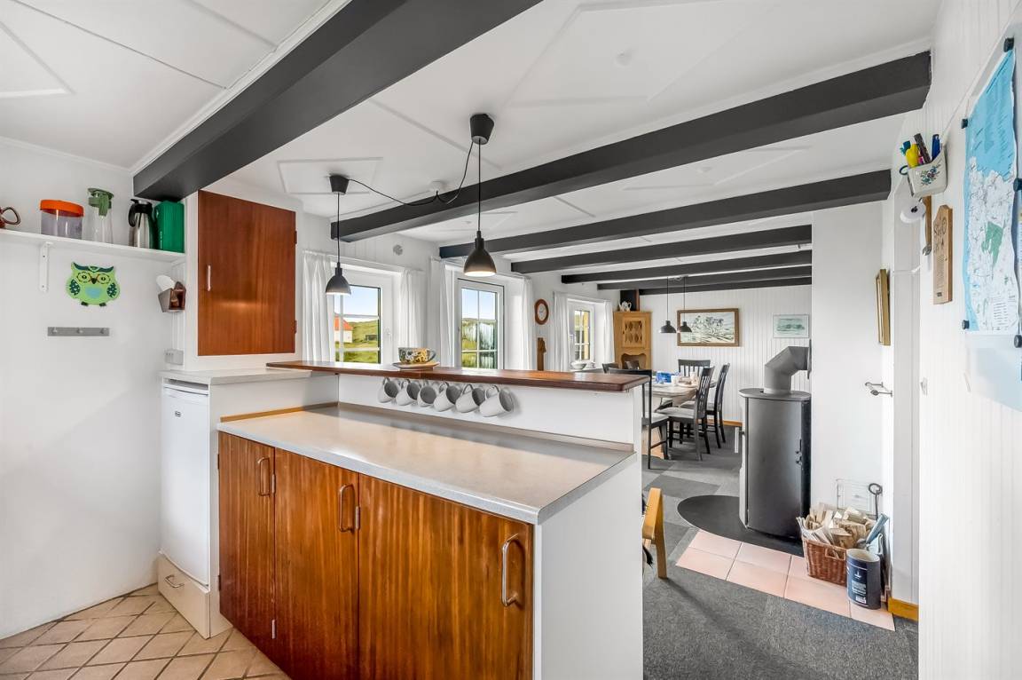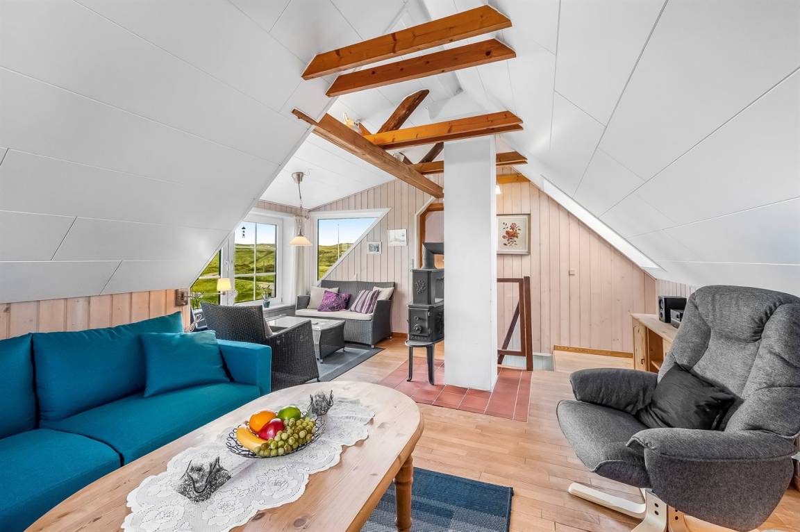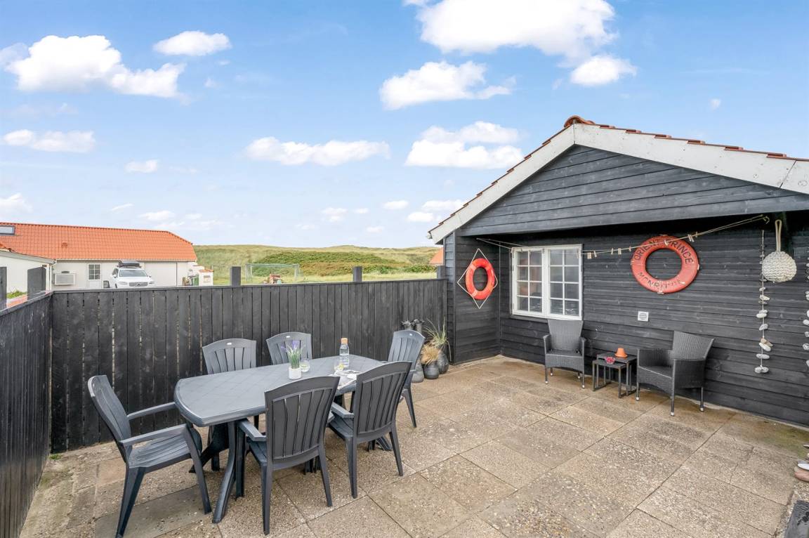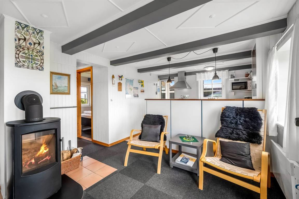 Nur 100 m von der Nordsee liegt dieses gemütliche ältere 2-stöckige Ferienhaus aus Stein, 1999 und 2008 teilweise renoviert, auf einem Naturgrundstück. Schöne Terrasse mit Gartenmöbeln. Holzwände, -decken und Teppichböden, jedoch Holzböden im Wohnzimmer und im Obergeschoss. Hier ist das Wohnzimmer zum Teil niedrig wegen den sichtbaren Deckenbalken. Badezimmer mit Duschnische und Klinkerboden. Küche mit Geschirrspüler, Mikrowelle und Tiefkühlgerät. Das Wohnzimmer im Erdgeschoss enthält Kaminofen. Im Obergeschoss enthält das Wohnzimmer Kaminofen, Stereoanlage mit CD-Spieler, DVD-Spieler und TV mit digitalem Satellitenanschluss. Ferner kostenlose, kabellose Internetverbindung vorhanden (Computer ist mitzubringen). Kinderbett, Sandkasten und Schaukel für die Kinder. Gute Angelmöglichkeiten in der Gegend.