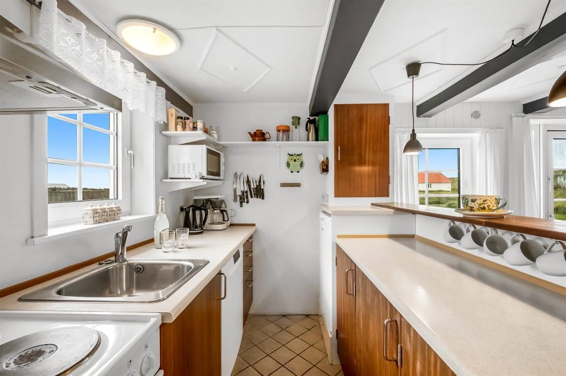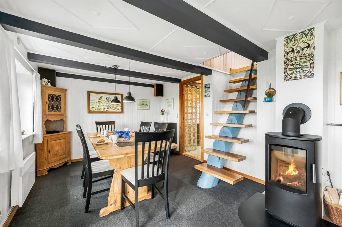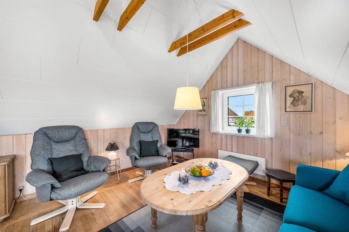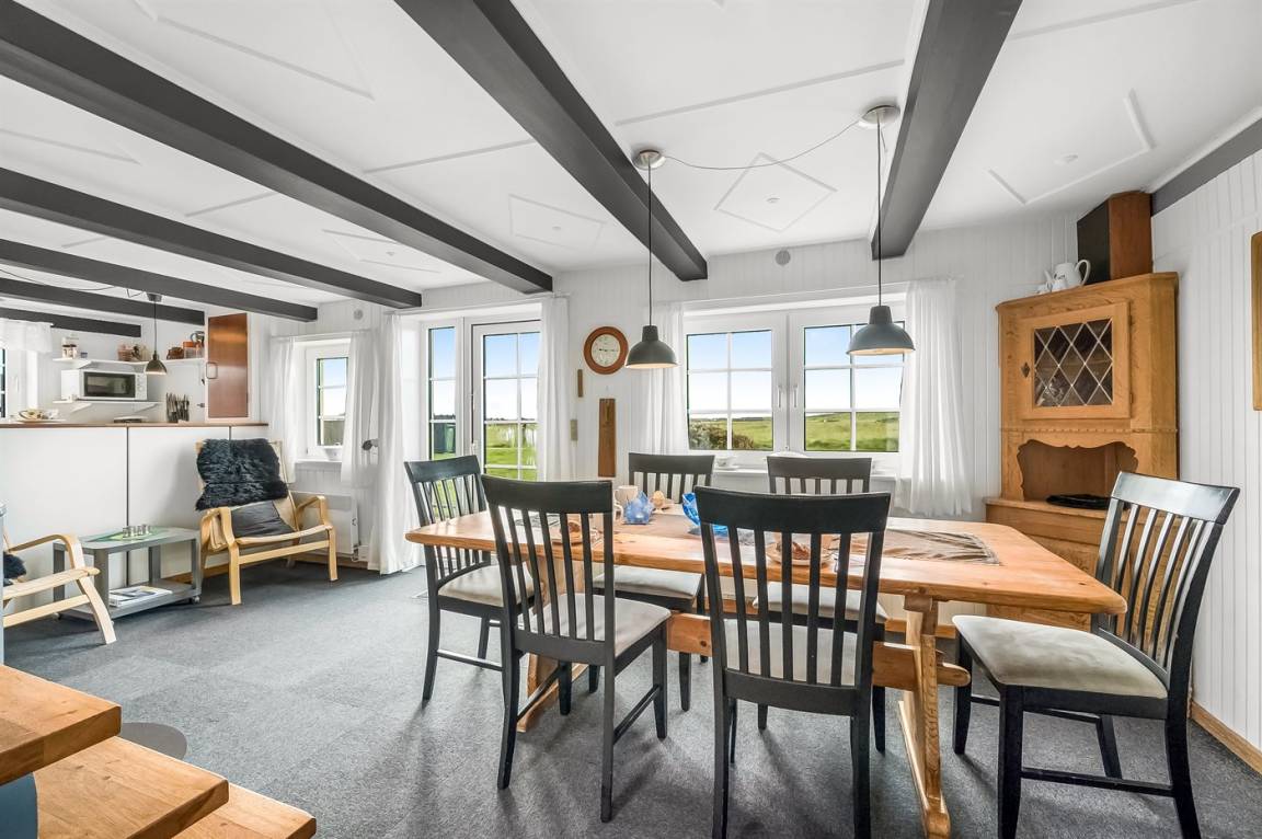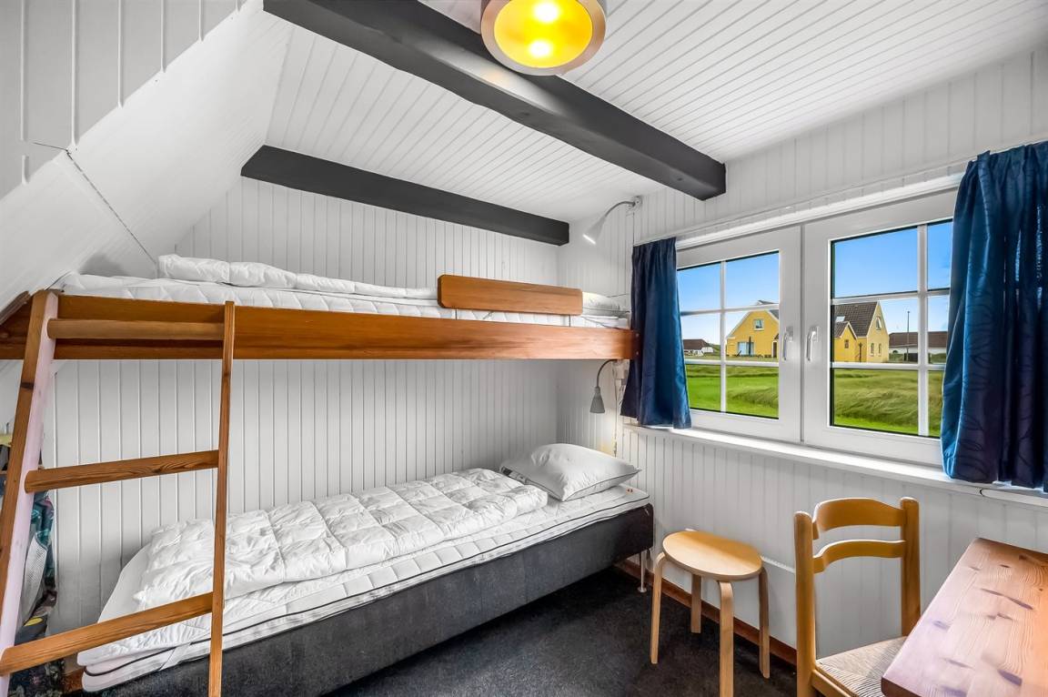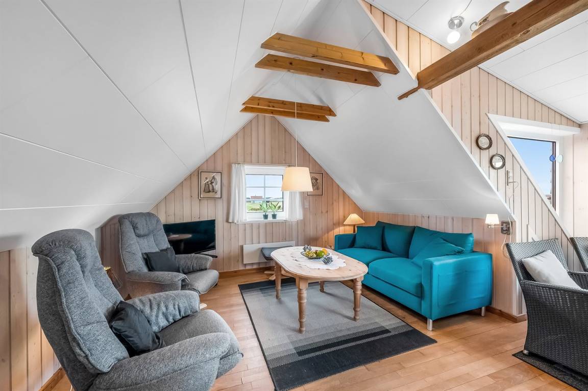 Nur 100 m von der Nordsee liegt dieses gemütliche ältere 2-stöckige Ferienhaus aus Stein, 1999 und 2008 teilweise renoviert, auf einem Naturgrundstück. Schöne Terrasse mit Gartenmöbeln. Holzwände, -decken und Teppichböden, jedoch Holzböden im Wohnzimmer und im Obergeschoss. Hier ist das Wohnzimmer zum Teil niedrig wegen den sichtbaren Deckenbalken. Badezimmer mit Duschnische und Klinkerboden. Küche mit Geschirrspüler, Mikrowelle und Tiefkühlgerät. Das Wohnzimmer im Erdgeschoss enthält Kaminofen. Im Obergeschoss enthält das Wohnzimmer Kaminofen, Stereoanlage mit CD-Spieler, DVD-Spieler und TV mit digitalem Satellitenanschluss. Ferner kostenlose, kabellose Internetverbindung vorhanden (Computer ist mitzubringen). Kinderbett, Sandkasten und Schaukel für die Kinder. Gute Angelmöglichkeiten in der Gegend.