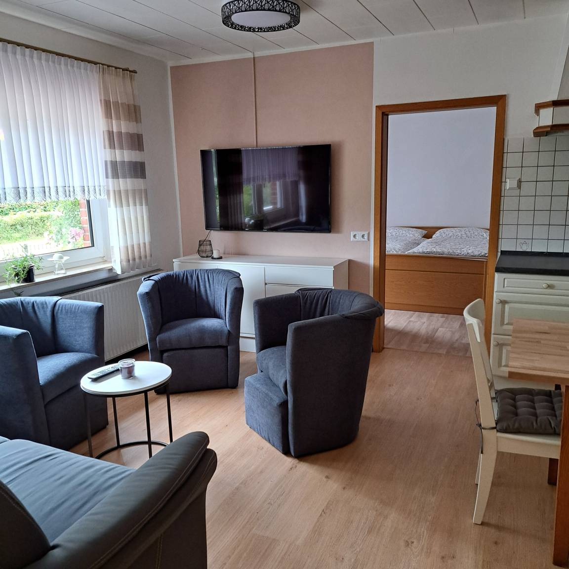 84 qm mit 3 Zimmer, Wohnküche, Bad & eine gemütliche Terrasse.Unsere Ferienwohnung befindet sich in ruhiger ländlicher Lage, ca. 5 km vom Ferienzentrum Schloss Dankern entfernt.