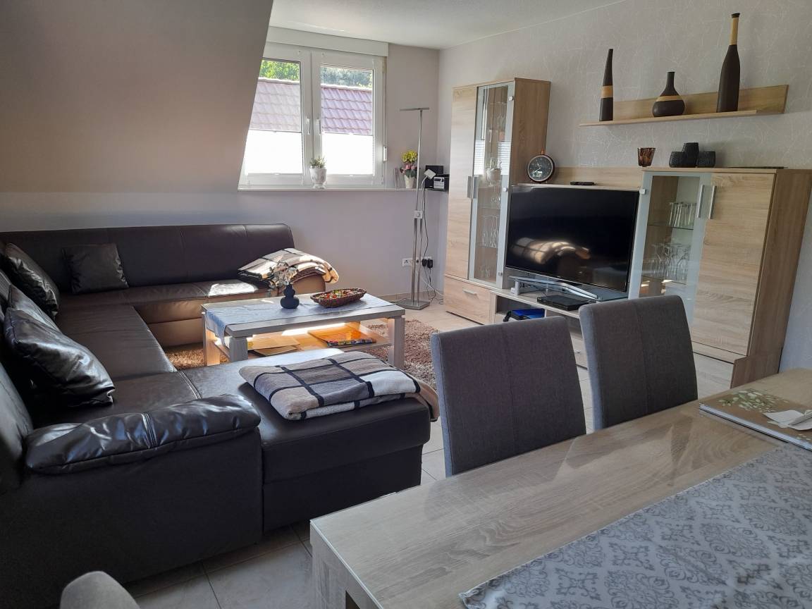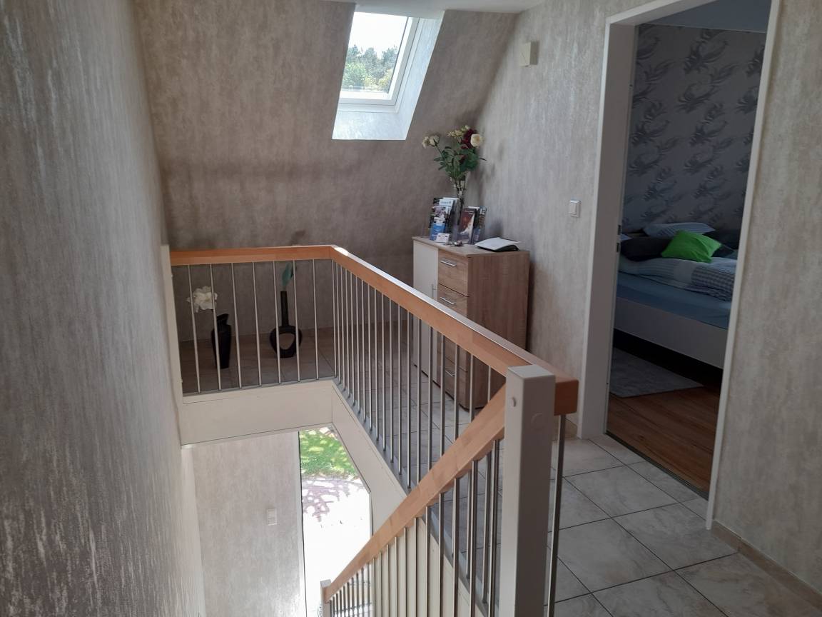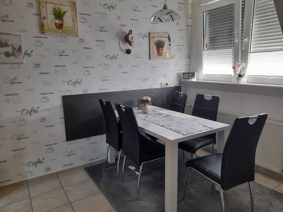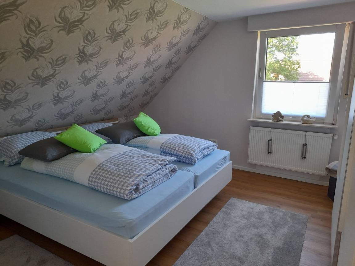 Angelikas Ferienparadies (Wohnung OG - Anni) bietet auf 85 Quadratmetern viel Platz für bis zu fünf Personen. Das großzügige Wohnzimmer und eine seperate Küche sind komfortabel eingerichetet. Ebenso wie drei Schlafzimmer und zwei Bäder, die entweder mit einer Dusche oder einer Badewanne ausgestattet sind. Großzügig angelegte Außenanlagen garantieren unbeschwerte sommerliche Grillabende mit Spielmöglichkeiten für die Kinder.