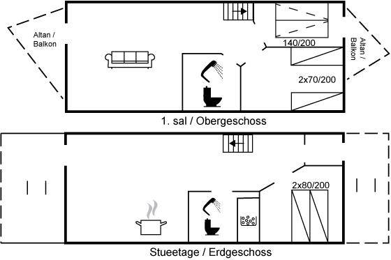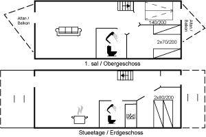 DraußenDie Ferienunterkunft liegt auf einem 140 m² großen Die Entfernung zum Meer beträgt 10 m. Es gibt einen Badesteg in der Nähe. Die nächste Einkaufsmöglichkeit liegt 600 m entfernt. Es steht ein 12 m² Terrassenareal zur Verfügung. Außerdem gibt es 6 m² überdachte Terrasse.Balkon im Obergeschoss. Geräteraum. Parkplatz auf dem Grundstück.