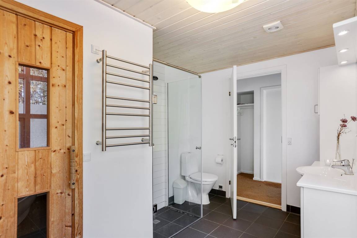 WC und BadEs gibt 2 Badezimmer mit Duschnische und 2 Toiletten.. Fußbodenheizung in 2 Badezimmern. Es steht eine Sauna zur Verfügung in der Sie sich so richtig entspannen können.