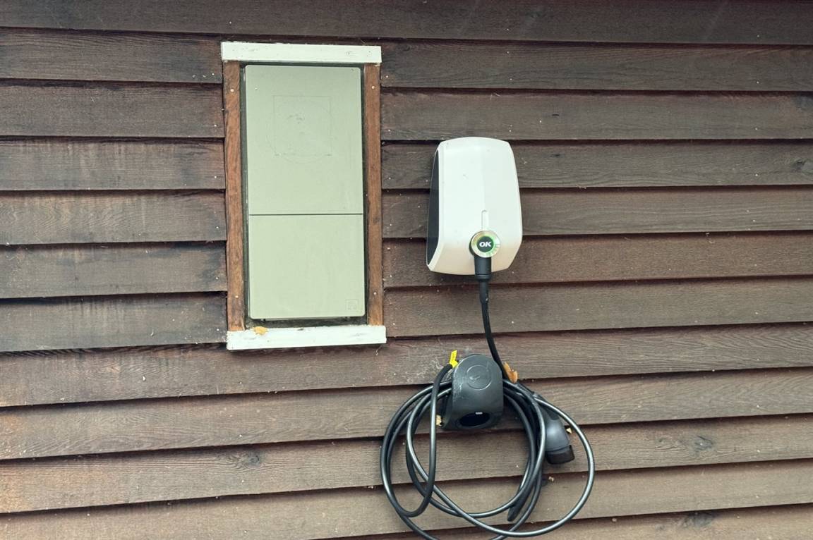 DraußenDie Ferienunterkunft liegt auf einem 1250 m² großen Naturgrundstück. Die Entfernung zum Meer beträgt 600 m. Die nächste Einkaufsmöglichkeit liegt 3000 m entfernt. In einem Abstand von 7500 m gibt es einen Golfplatz. Es steht ein 30 m² Terrassenareal zur Verfügung. Außerdem gibt es 10 m² überdachte Terrasse. Geräteraum. Es ist ein Ladestecker für Elektroautos installiert. Ladestecker Typ 2. Mit einer Ladeleistung von 11 kW. Parkplatz auf dem Grundstück.