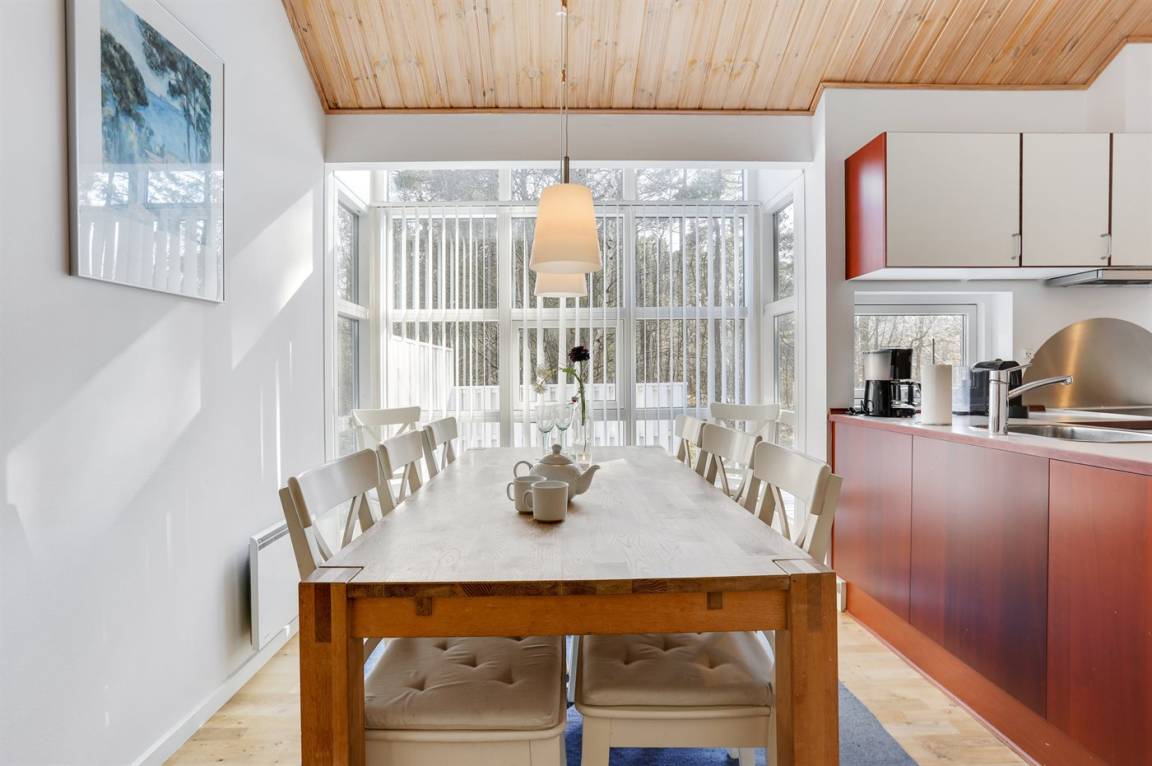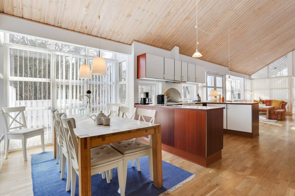 Dieses gepflegte Ferienhaus liegt in naturschöner Umgebung dicht am Waldsee Rubinsøen – nicht weit von einem Sandstrand und dem ehemaligen Fischerdorf Hasle entfernt. Zum Haus gehört u. a. eine teilweise überdachte Terrasse mit Gartenmöbeln von guter Qualität und ein großer Sonnenschirm. Es stehen u. a. ein 50" Flatscreen Fernseher (viele deutsche und dänische sowie einzelne englische Fernsehsender) und eine Ipod-Dockingstation zur Verfügung. In der Küche gibt es sowohl eine gewöhnliche Kaffeemaschine als auch eine Nespresso Kaffeekapselmaschine (Kapseln müssen mitgebracht werden). Es stehen 2 tolle, neu renovierte Badezimmmer(2020) zur Verfügung, beide mit Fußbodenheizung und Handtuchtrockner. Ein schönes Ferienhaus für sowohl 1 als auch 2 Familien geeignet.