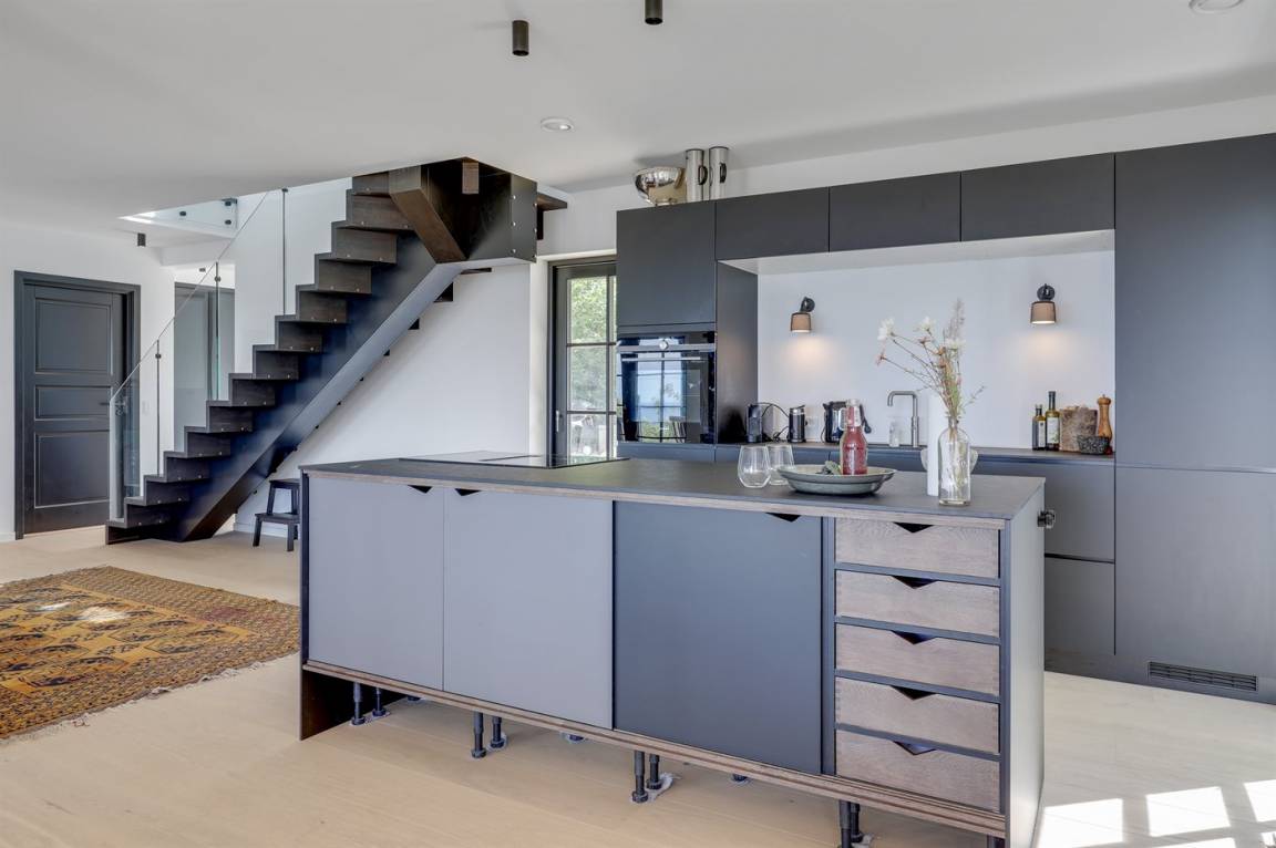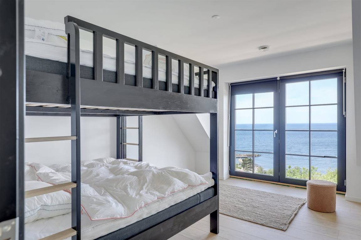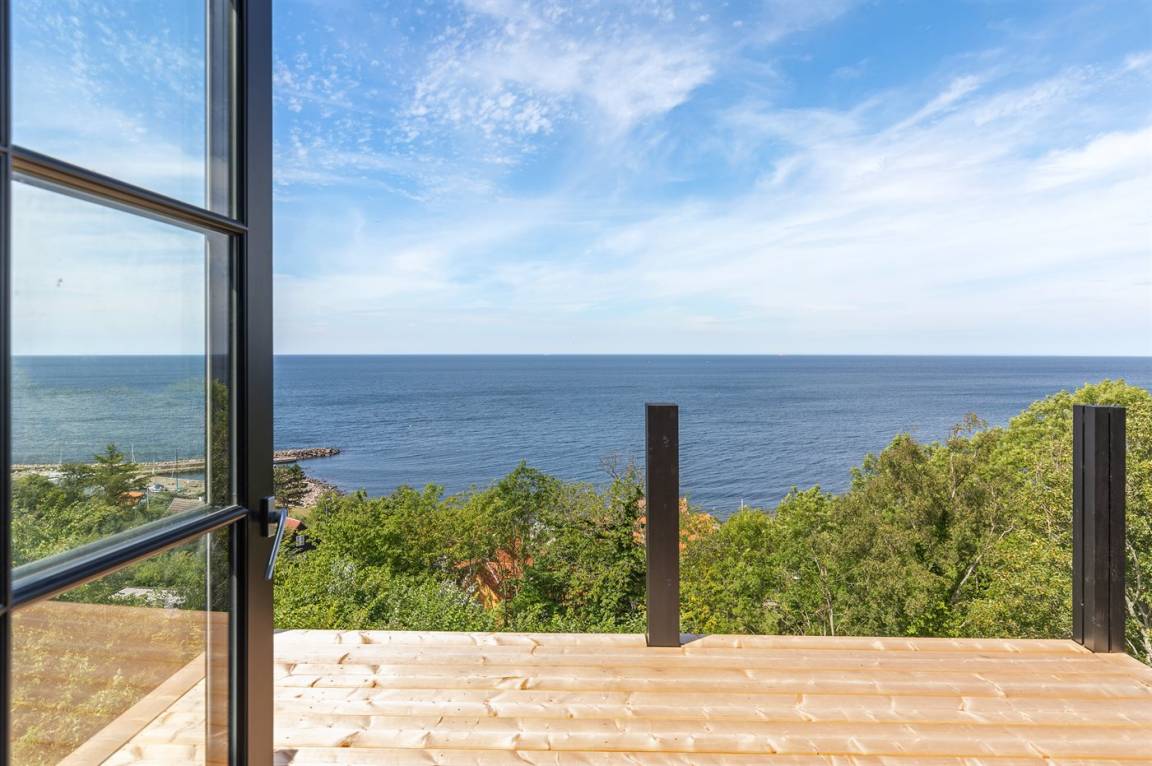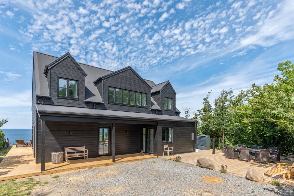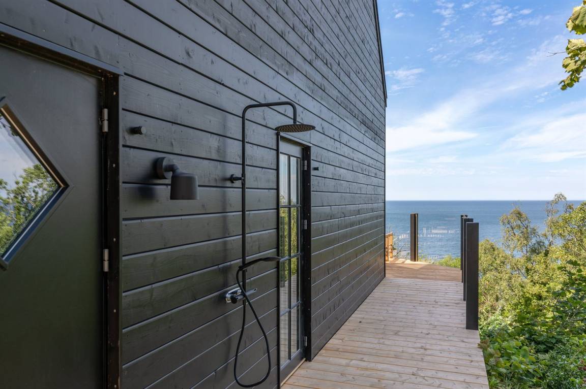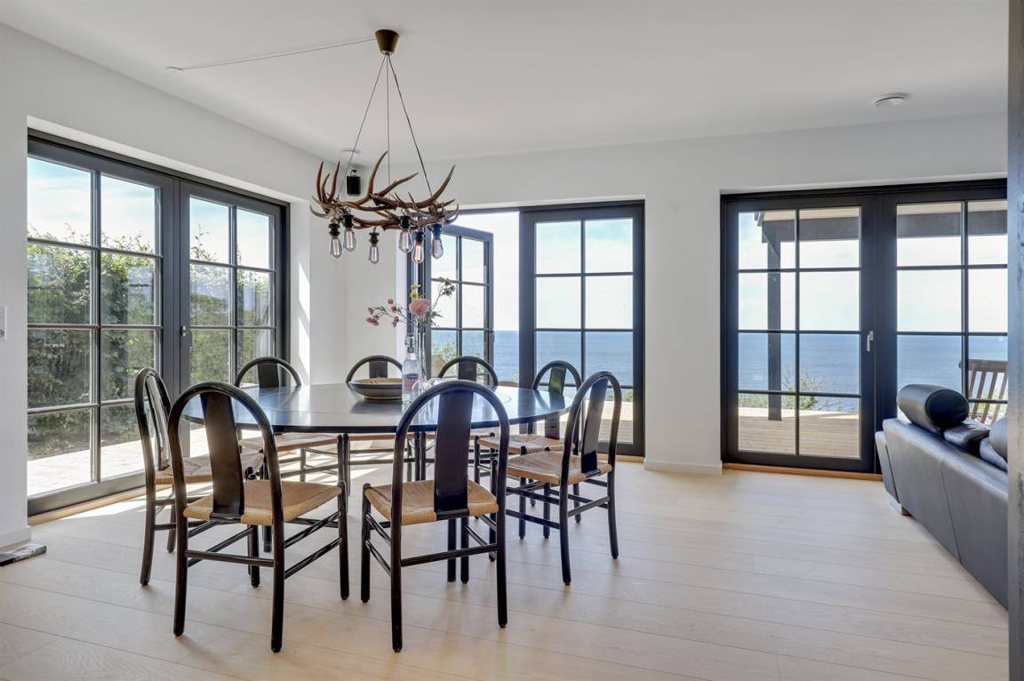 Hervorragend gelegenes Ferienhaus mit großartiger Aussicht auf das Meer. Sowohl aus dem Wohnzimmer als auch aus der Mansarde des Hauses hat man einen einzigartigen Blick auf das Meer. Hügeliges Grundstück. Das Haus liegt über dem kleinen Fischerdorf Vang, das auch für die vielen Steinmetze berühmt ist, die früher dort lebten. Das Naturgebiet Ringebakkerne bietet eine großartige Natur, in der zahlreiche Tierarten zuhause sind, und eine fantastische Aussicht über die Felsen, ihre steilen Wände und das Meer.