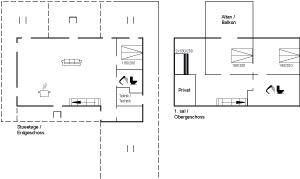 SchlafverhältnisseDie Schlafplätze verteilen sich auf 4 Schlafräume. 6 Schlafplätze in Doppelbetten. 4 Schlafplätze in Etagenbetten.