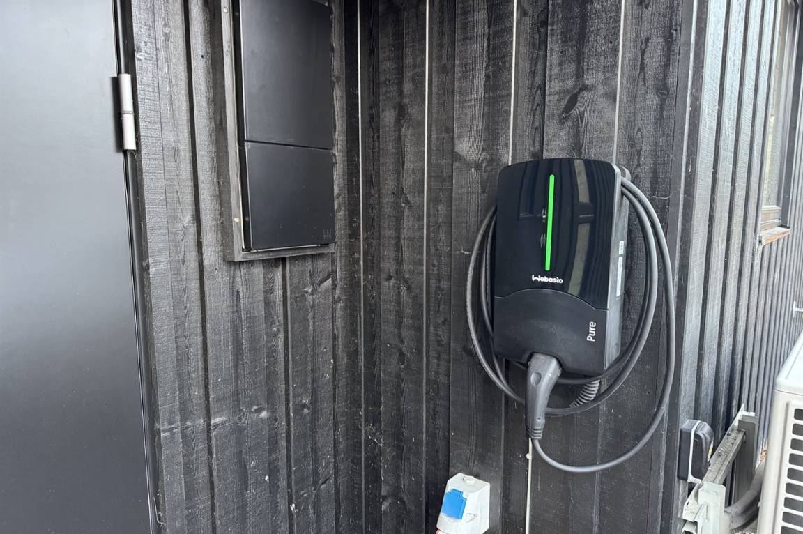 DraußenDie Ferienunterkunft liegt auf einem 1400 m² großen Naturgrundstück. Die Entfernung zum Meer beträgt 800 m. Die nächste Einkaufsmöglichkeit liegt 3000 m entfernt. In einem Abstand von 10000 m gibt es einen Golfplatz. Es steht ein 80 m² Terrassenareal zur Verfügung. Geräteraum. Es steht ein Grill zur Verfügung. Es ist ein Ladestecker für Elektroautos installiert. Ladestecker Typ 2. Parkplatz auf dem Grundstück.