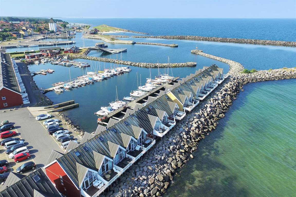 Schönes 2-stöckiges Luxusferienhaus mit einzigartiger Lage und großartigem Meerblick, 2003 gebaut. Ist auf einem Naturgrundstück mit Felsen am Kai gelegen. Balkon mit Aussicht über den Segelboothafen. Große, erhobene Terrasse zum Meer und Felsen. Klinkerböden im Erdgeschoss, Holzböden im Obergeschoss. Großes Wohnzimmer mit Aussicht, mit TV, digitalem Satellittenanschluss, DVD-Spieler, Radio sowie CD-Spieler. Kaminofen. Küche mit Herd mit Warmluftofen und Ceran-Feld, Geschirrspüler, Mikrowelle und Tiefkühlgerät. 2 Badezimmer mit Fußbodenheizung und Duschnischen. In einem gibt es 2-Pers. Whirlpool, Waschmaschine und Wäschetrockner. Offenes Obergeschoss mit zwei Schlafplätzen auf Matratzen. An weiterer Ausstattung können kostenlose, kalbellose Internetverbindung (Computer ist mitzubringen), Kinderbett und Kinderhochstuhl erwähnt werden. Sehr schönes Reihenhaus nah einem guten Badestrand und der lebhaften maritimen Stadt Hasle, mit Straßen aus Pflasterstein, Räucherei.
