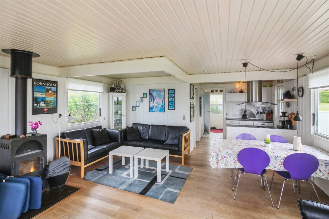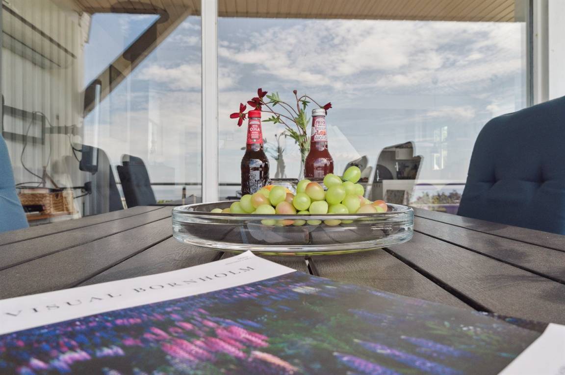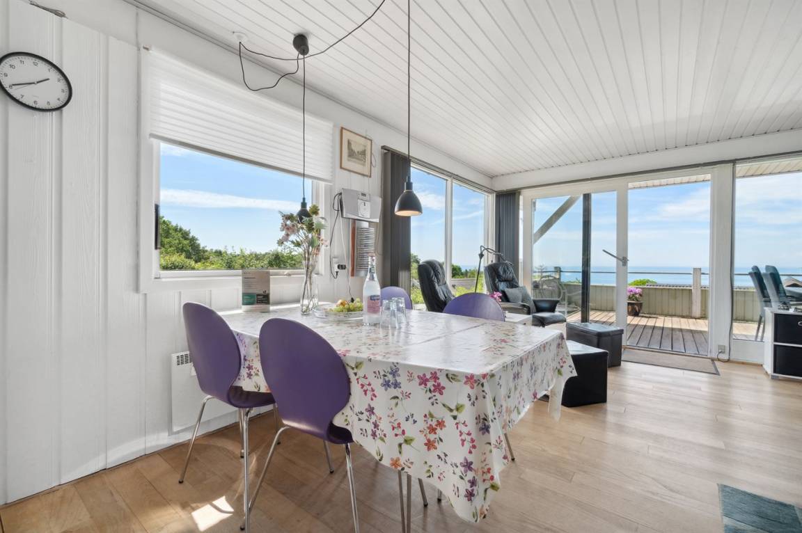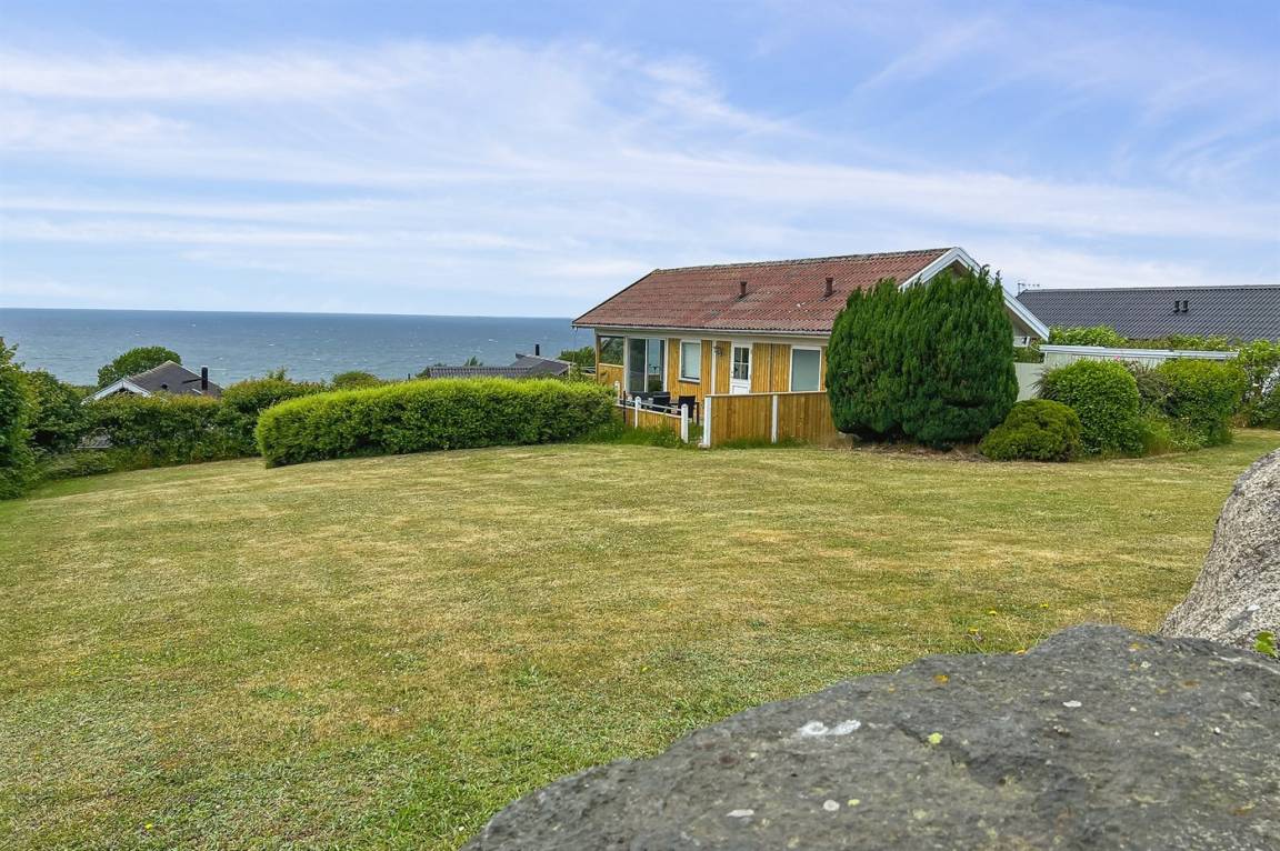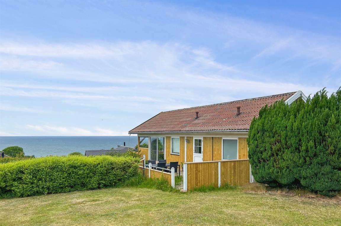 Ein Ferienhaus in erhöhter Lage und mit fantastischem Blick auf die Ostsee und das schöne Gebiet. Das Haus ist schön, in hellen und einladenden Farben eingerichtet. Durch die Lage im Feriengebiet Vang kann man mit etwas Glück den Sonnenuntergang über dem Meer erleben.