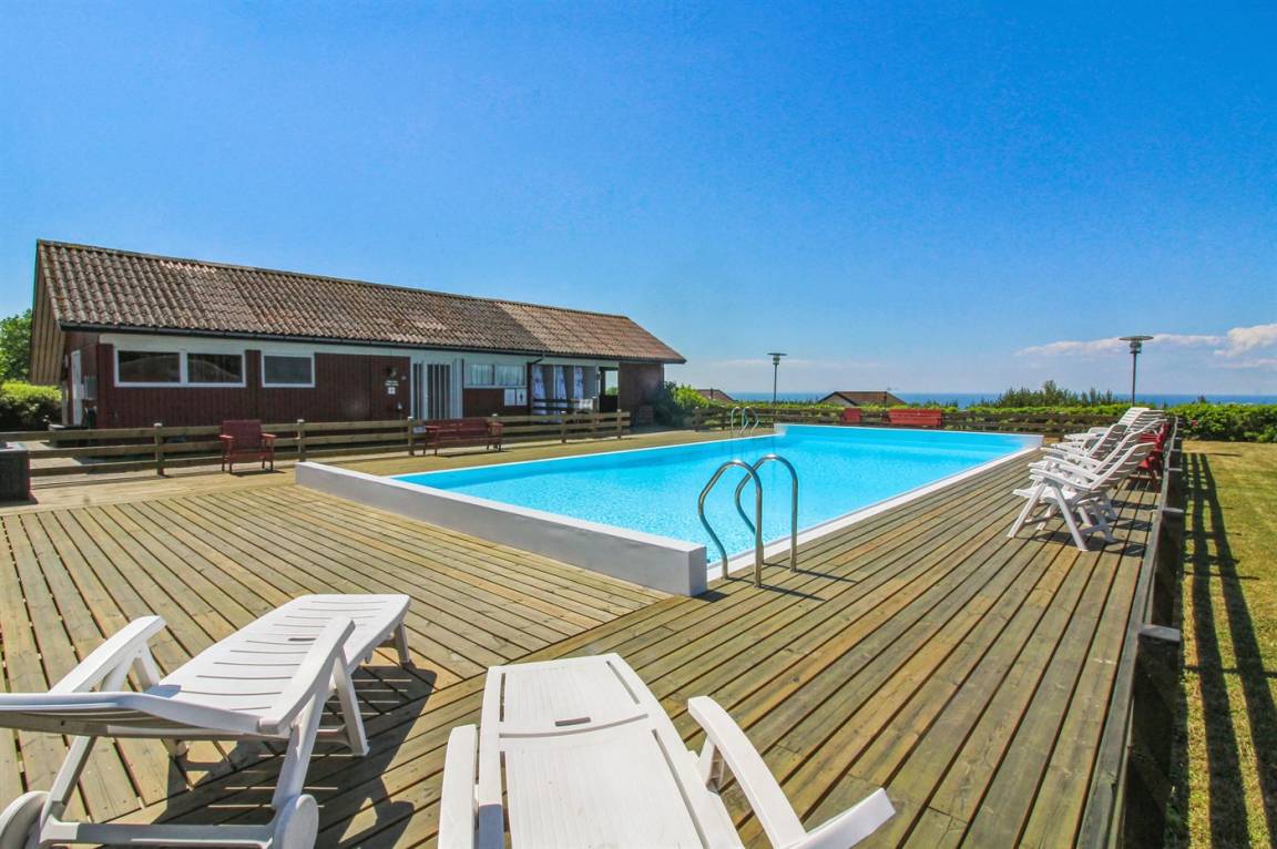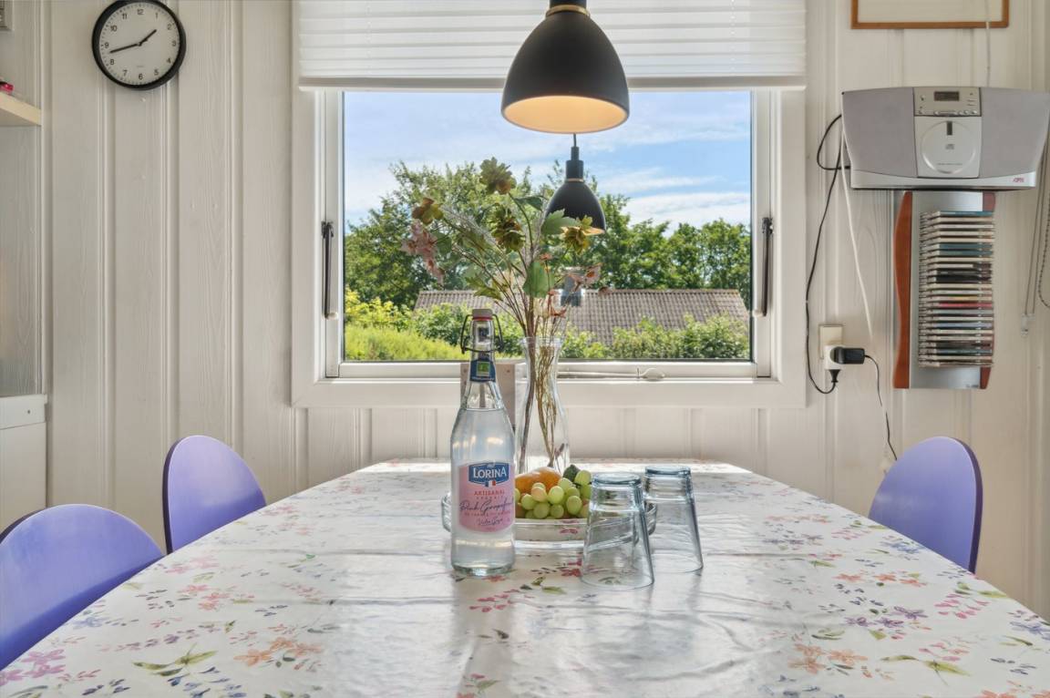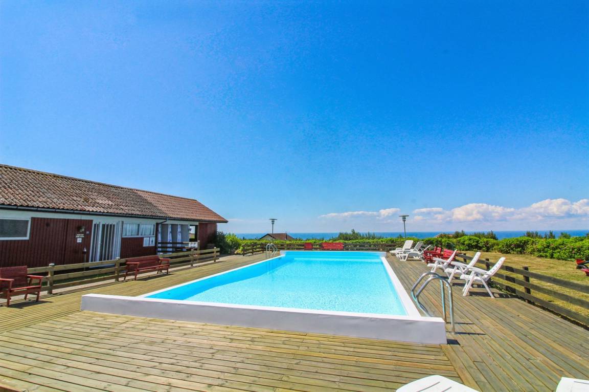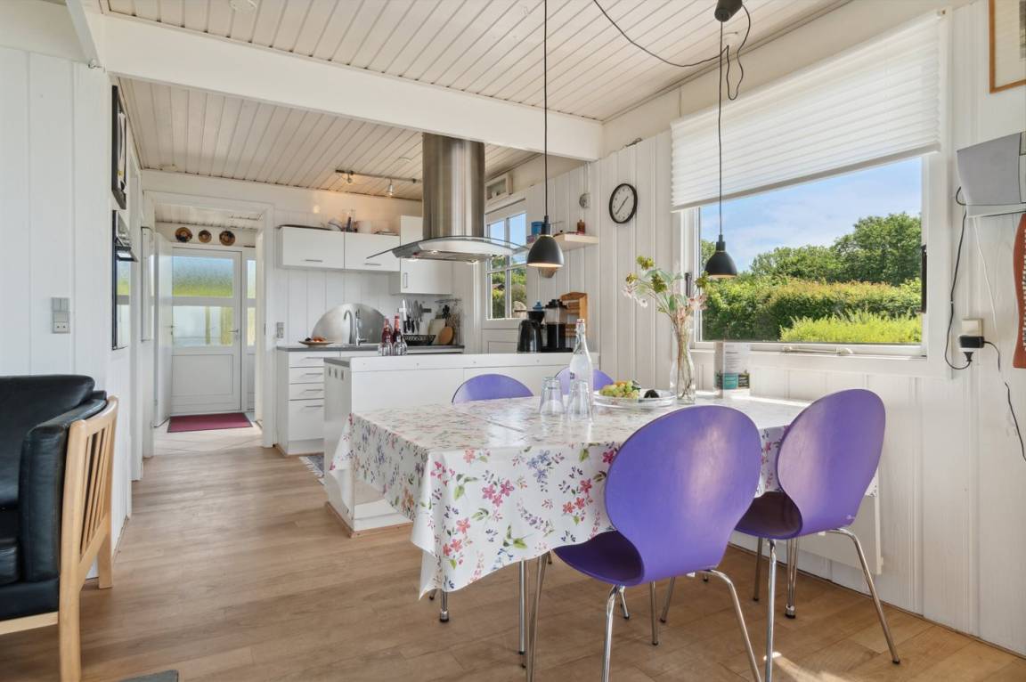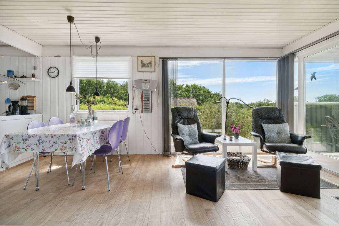 Ein Ferienhaus in erhöhter Lage und mit fantastischem Blick auf die Ostsee und das schöne Gebiet. Das Haus ist schön, in hellen und einladenden Farben eingerichtet. Durch die Lage im Feriengebiet Vang kann man mit etwas Glück den Sonnenuntergang über dem Meer erleben.