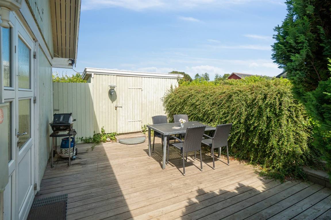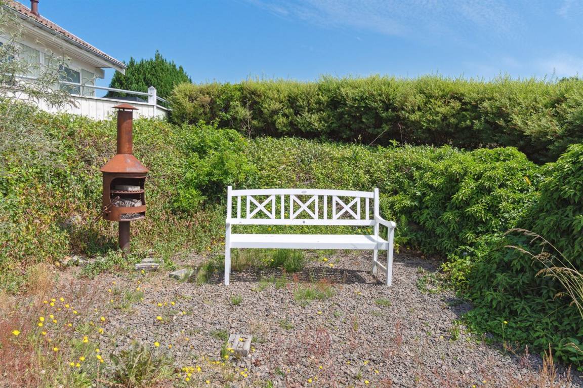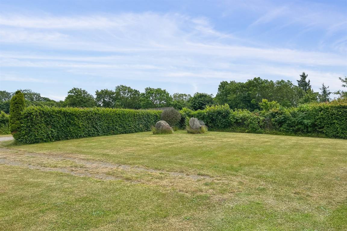 Das Haus liegt auf einem großen Grundstück mit Rasen, das von einer Hecke umgeben ist, so dass man sich auf dem Grundstück und auf der gut abgeschirmten Naturterrasse, die sich am unteren Ende des Grundstücks befindet, ungestört aufhalten kann. Insgesamt gibt es mehrere unabhängige Terrassen, davon auch einen überdachten Teil, der in den schönen Sommermonaten zu Grillabenden einlädt.