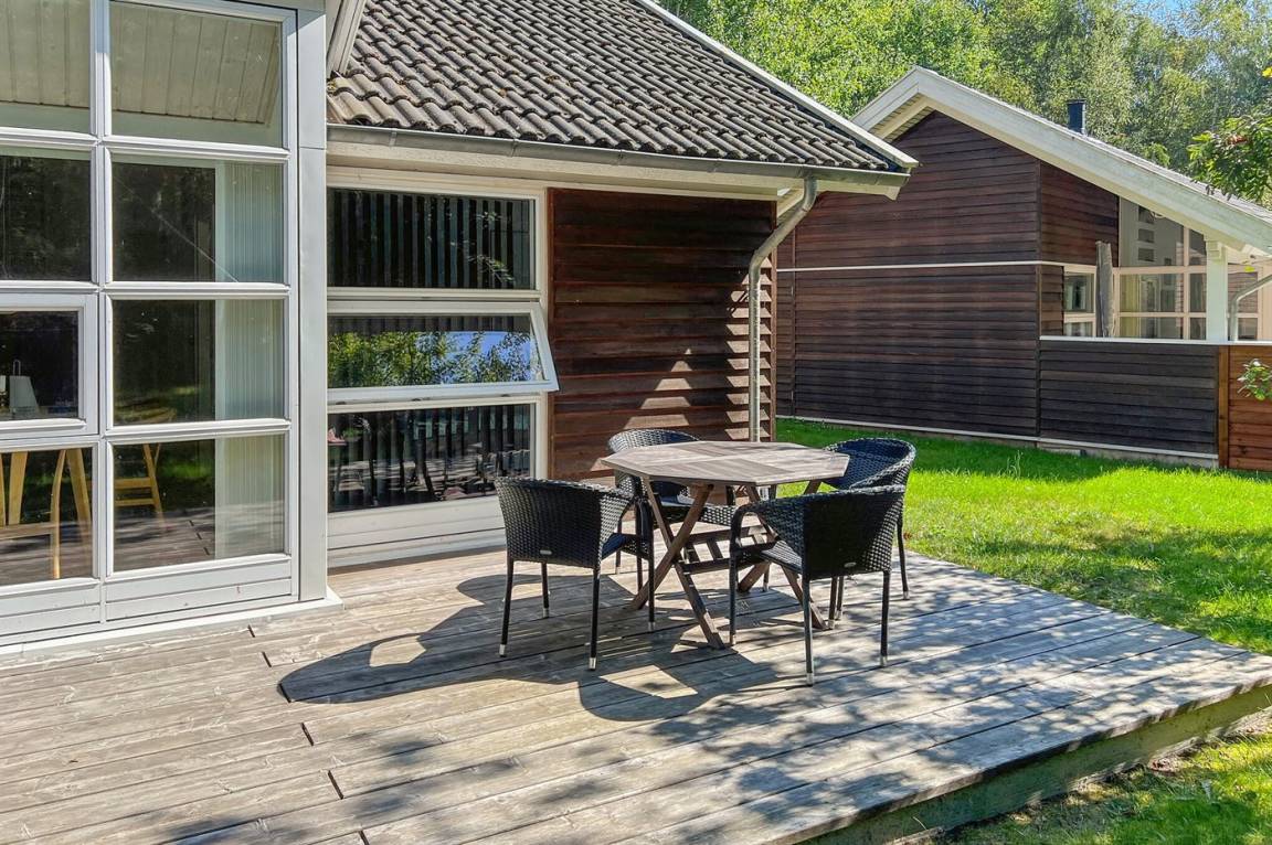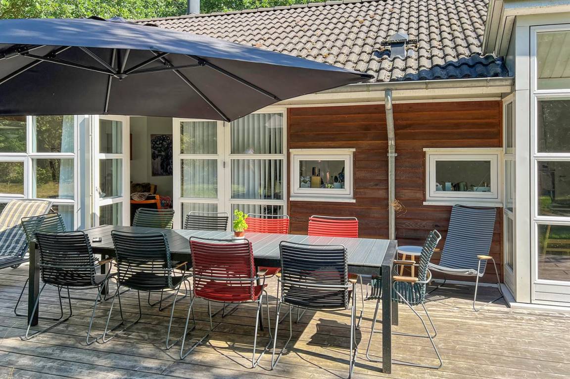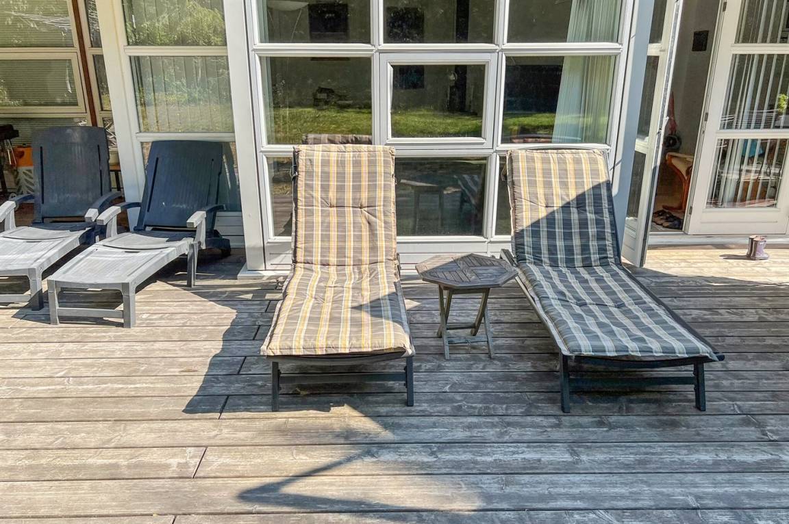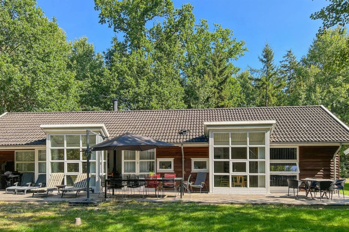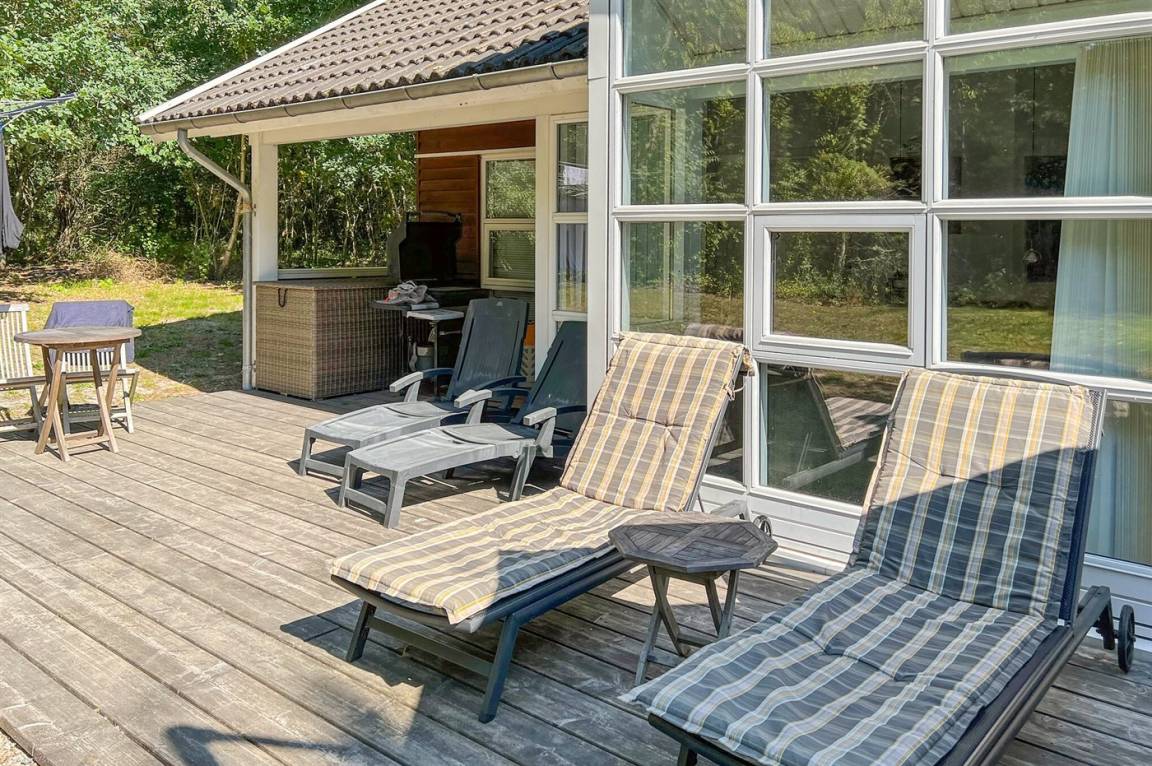 Die Ferienunterkunft liegt auf einem 500 m² großen Grundstück im Wald. Durch den Wald sind es 1200 Meter bis zum Meer. Das nächste Geschäft ist 3000 m entfernt. Der nächste Golfplatz ist 8000 m entfernt. Die Ferienunterkunft hat einen neuen offenen Terrassenbereich, der 55 m² groß ist und mit neuen Möbeln, Liegestühlen, einem großen Sonnenschirm und einem Grill ausgestattet ist. Es gibt außerdem eine 10 m² große überdachte Terrasse. Es ist ein Geräteraum vorhanden. Parkmöglichkeit an der Ferienunterkunft.