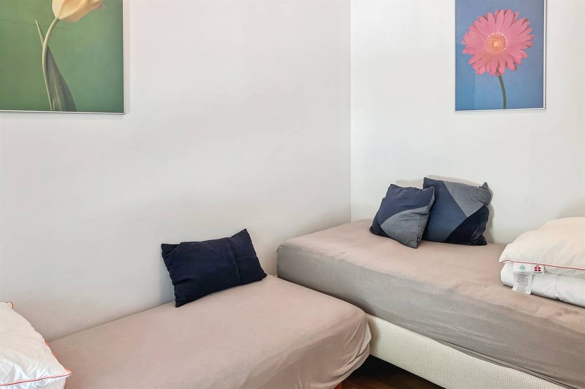Es gibt insgesamt 4 Schlafzimmer. Die Schlafplätze verteilen sich wie folgt: 2 Schlafplätze in Einzelbetten (davon ist eines ein höhenverstellbares Bett). 6 Schlafplätze in Doppelbetten (davon ist eines ein höhenverstellbares Bett). Zudem gibt es 1 Kinderbett.