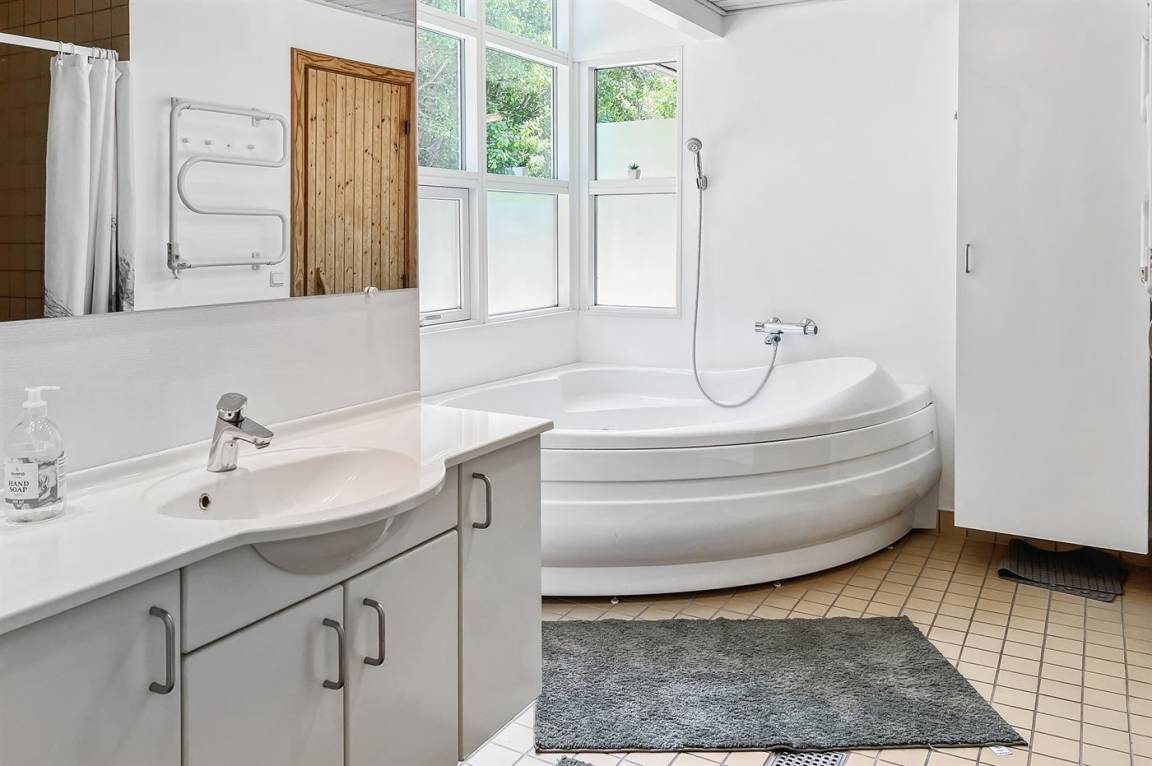 Es gibt 1 Badezimmer mit Duschnische und 2 Toiletten. Davon ist 1 eine Gästetoilette. Das Badezimmer verfügt über eine Fußbodenheizung. Entspannen können Sie sich in der Sauna