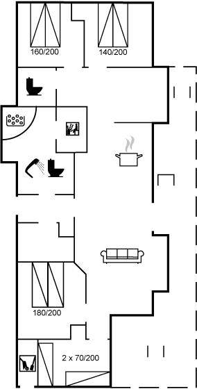 Das Ferienhaus eignet sich für bis zu 8 Personen. Die Unterkunft wurde 2005 erbaut und ist 117 m² groß. Es ist nicht gestattet, Haustiere mitzubringen. Die Ferienunterkunft ist mit 1 energiesparenden Wärmepumpe ausgestattet. Die Ferienunterkunft verfügt über eine Waschmaschine. Wäschetrockner. Es steht ein Gefrierschrank zur Verfügung (Kapazität 30 Liter). Zudem gibt es einen Kaminofen. Für die ganz Kleinen ist 1 Kinderstuhl vorhanden. Es gibt ein kleines offenes Obergeschoss, in dem für die Kinder 2 zusätzliche Schlafplätze auf Matratzen eingerichtet sind.