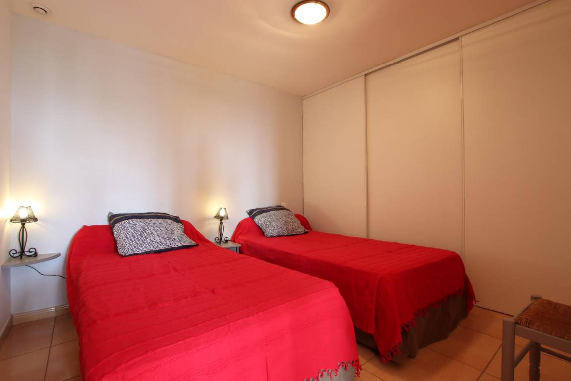 Ausgestattete Küche (Kühlschrank mit Gefrierfach, Backofen und Mikrowelle, Gasherd, Geschirrspüler)/Essbereich, Wohnbereich (TV), 1 Schlafzimmer (1 Doppelbett), 1 Schlafbereich (2 Einzelbetten), Badezimmer mit Wasser (Waschmaschine), Toilette. Elektroheizung in Ergänzung. Betten bei Ankunft bezogen. Internet Zugang.