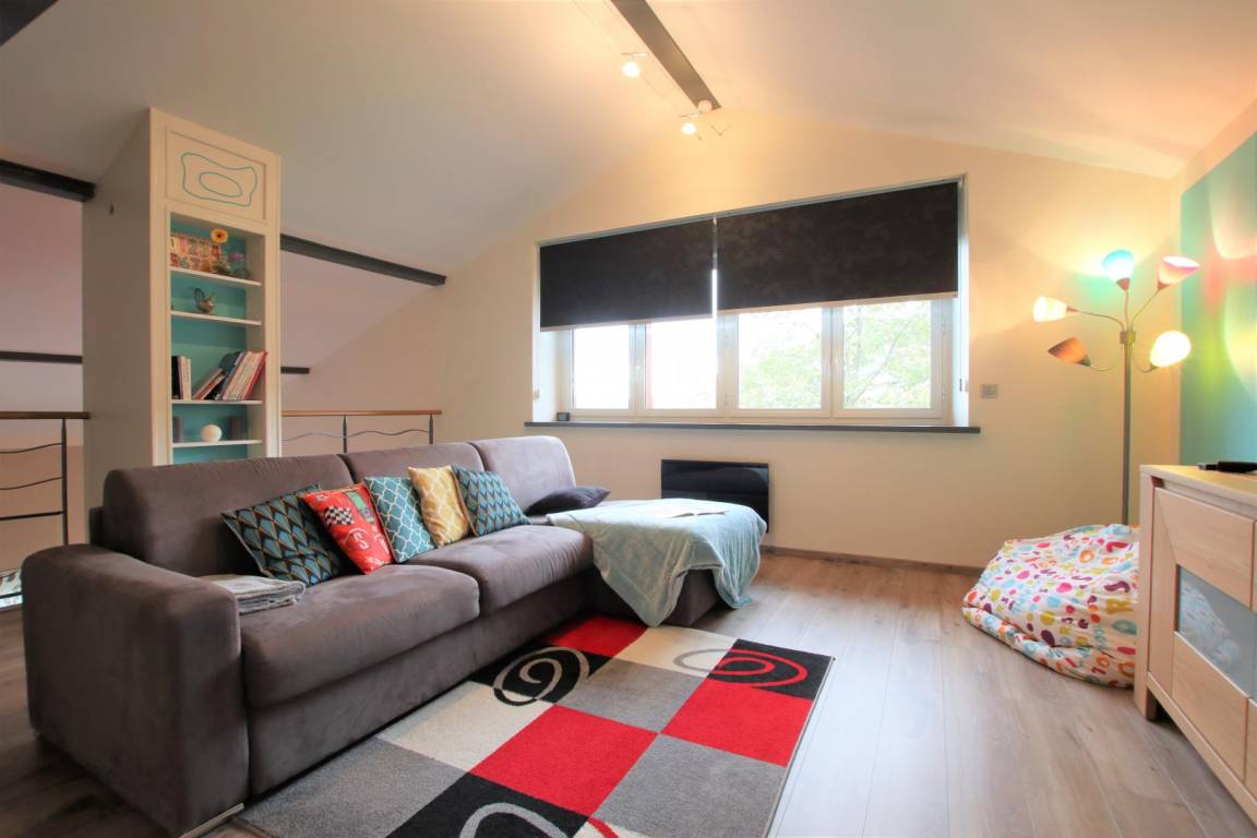 Obergeschoss: Mezzanine mit Lounge (Sofa, Spielecke), 2 Schlafzimmer (2 Doppelbetten), Duschbad, WC.