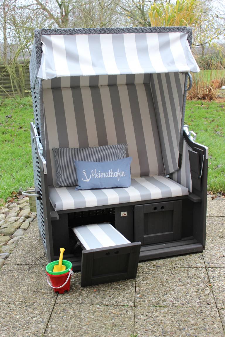 Unsere Ferienwohnung "Ostseeanleger" bietet mit ihrem hell eingerichteten Wohnraum und ihren beiden gemütlichen Schlafzimmern Platz für vier Personen. Das Elternschlafzimmer besitzt ein großzügiges Doppelbett, das zweite Schlafzimmer zwei einzelne Betten. Alle Betten sind für Ihren erholsamen Schlaf mit hochwertigen Matratzen und Lattenrosten ausgestattet. Nach Herzenslust Kochen ist in der gut ausgestatteten Küche sehr leicht möglich, den Abwasch macht die Geschirrspülmaschine. Eine separate Terrasse mit eigenem Strandkorb lädt zum Lesen, Träumen und Seele baumeln lassen ein. Für Rollstuhlfahrer sind Eingangs- und Terrassentüren ohne Schwellen eingebaut worden, und die Türen innerhalb der Wohnung sind einen Meter breit. Im Bad wurden unterfahrbare, flache Waschbecken und Haltegriffe an der Toilette sowie an der flachen Dusche verbaut.