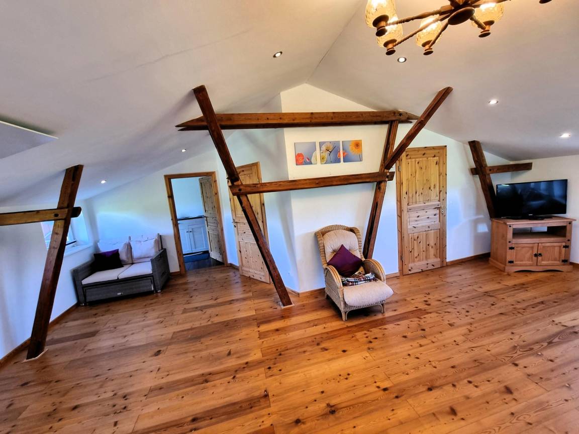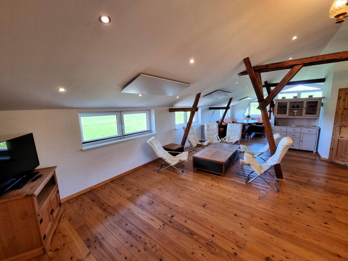 Layout : Gästeunterkunft in der 1. Etage(privater Eingang): Eingang, offene Küche mit Esstisch, Sitzecke, Wasserkocher, Toaster, Kochherd, Kaffeemaschine(Filter), Backofen, Geschirrspüler, Kühl-/Gefrierkombination, Waschmaschine , Wohn-/Schlafzimmer mit Doppelbett , 2x Schlafzimmer mit Doppelbett , Badezimmer mit Waschbecken, Dusche, Toilette