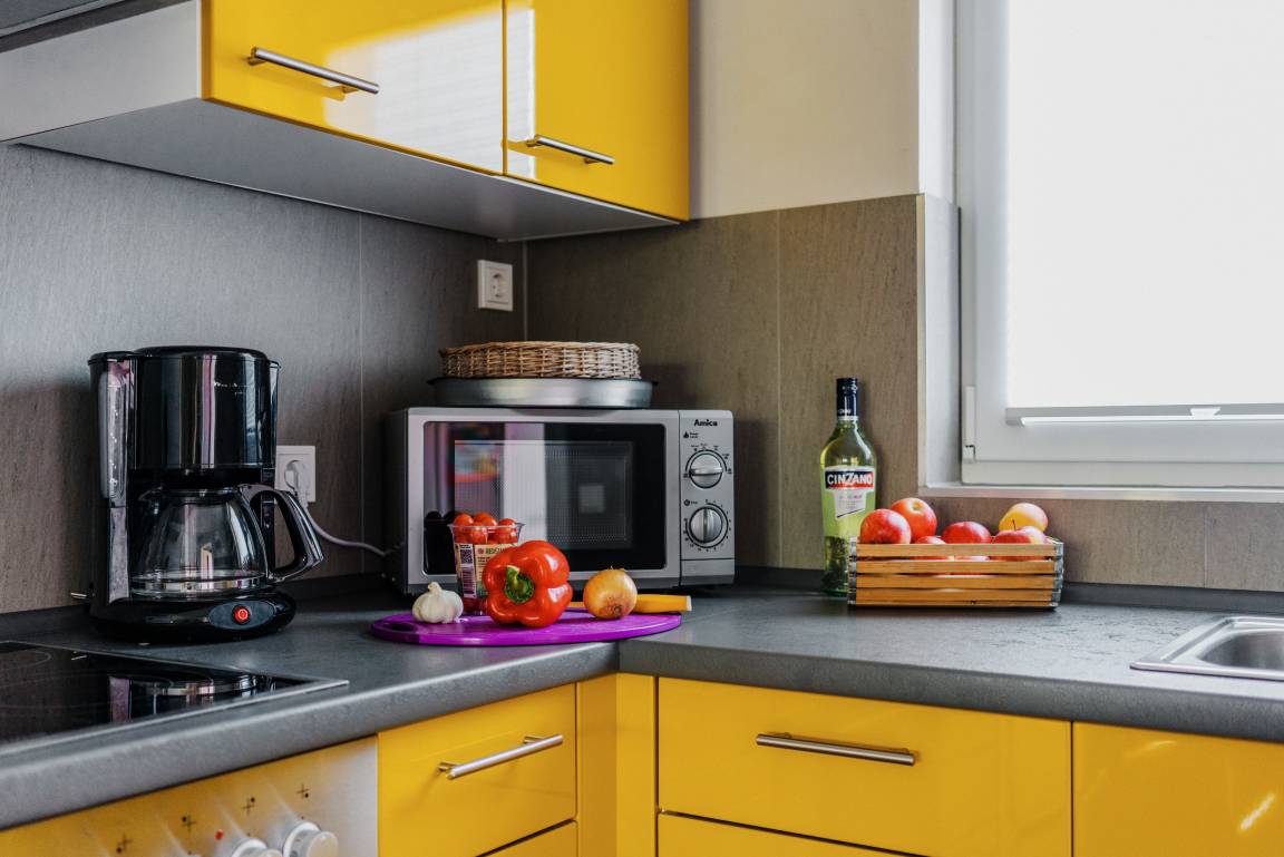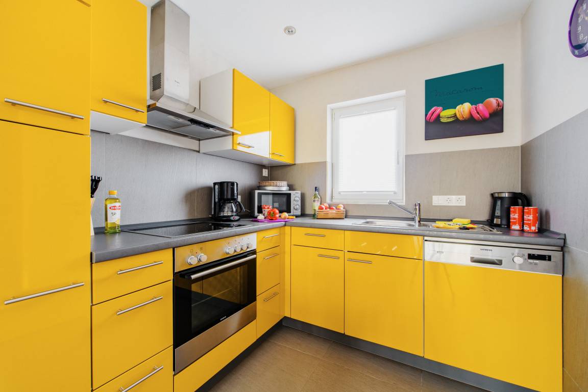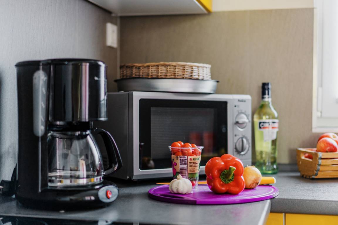 mit Geschirrspüler, Ceranherd mit Backofen, Mikrowelle, Kühl-/Gefrierkombination, Toaster, Kaffeemaschine, Padmaschine und vielem mehr.