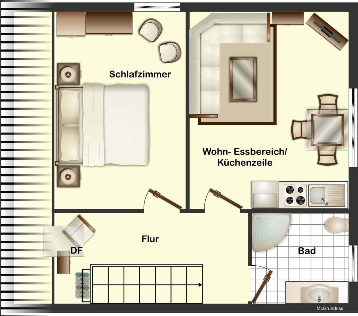40 m² Ferienwohnung ∙ 1 Schlafzimmer ∙ 3 Gäste