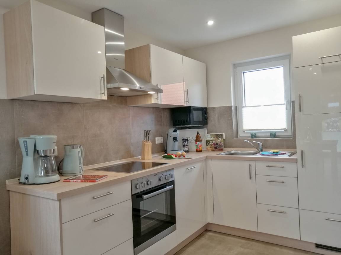 1 moderne vollausgestattete Küche mit Geschirrspüler, Mikrowelle, E-Herd (Ceran) mit Backofen, Kühl-/ Gefrierkombination, Toaster, Kaffeemaschine, Mikrowelle u.v.m.