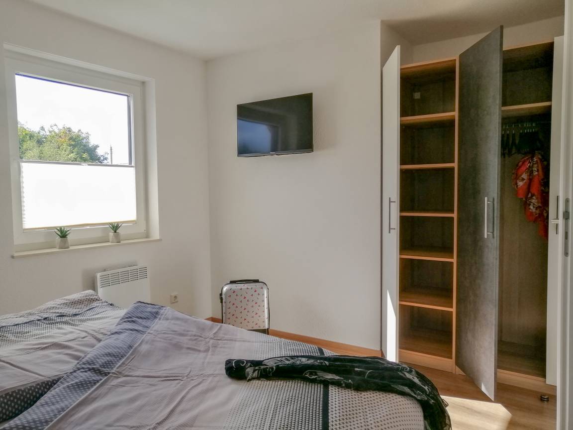 1 Schlafzimmer mit Doppelbett, Kleiderschrank, SAT- TV