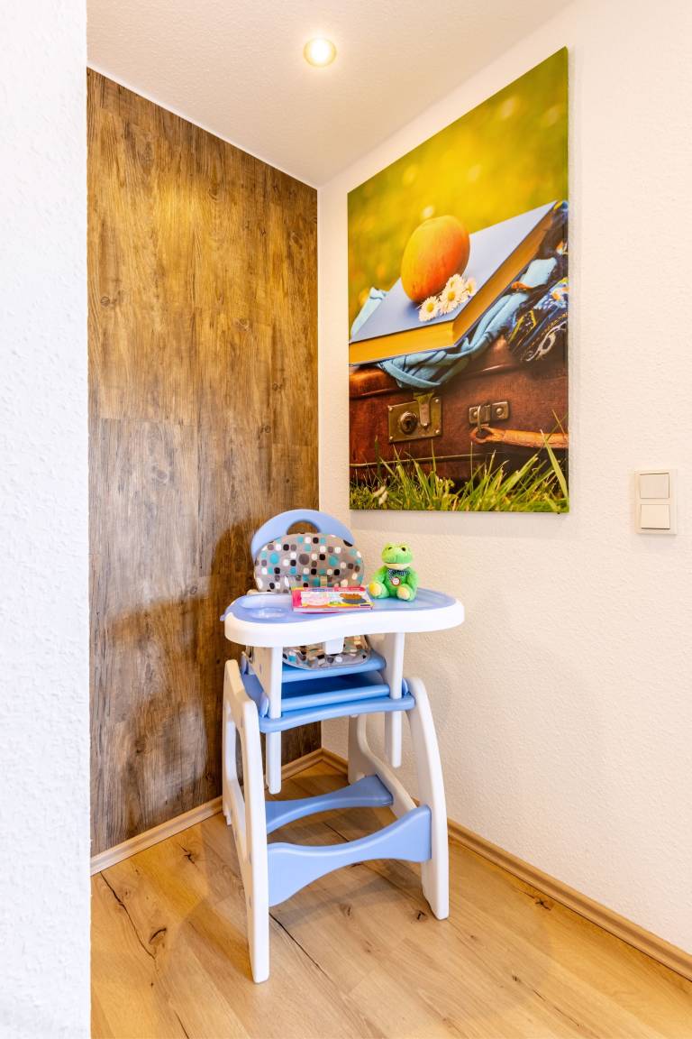 Für unsere kleinsten Gäste stehen kostenlos ein Kinderbett mit zusätzlicher Matratze sowie ein Hochstuhl bereit.