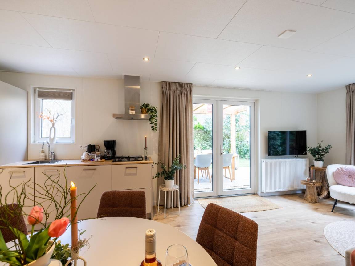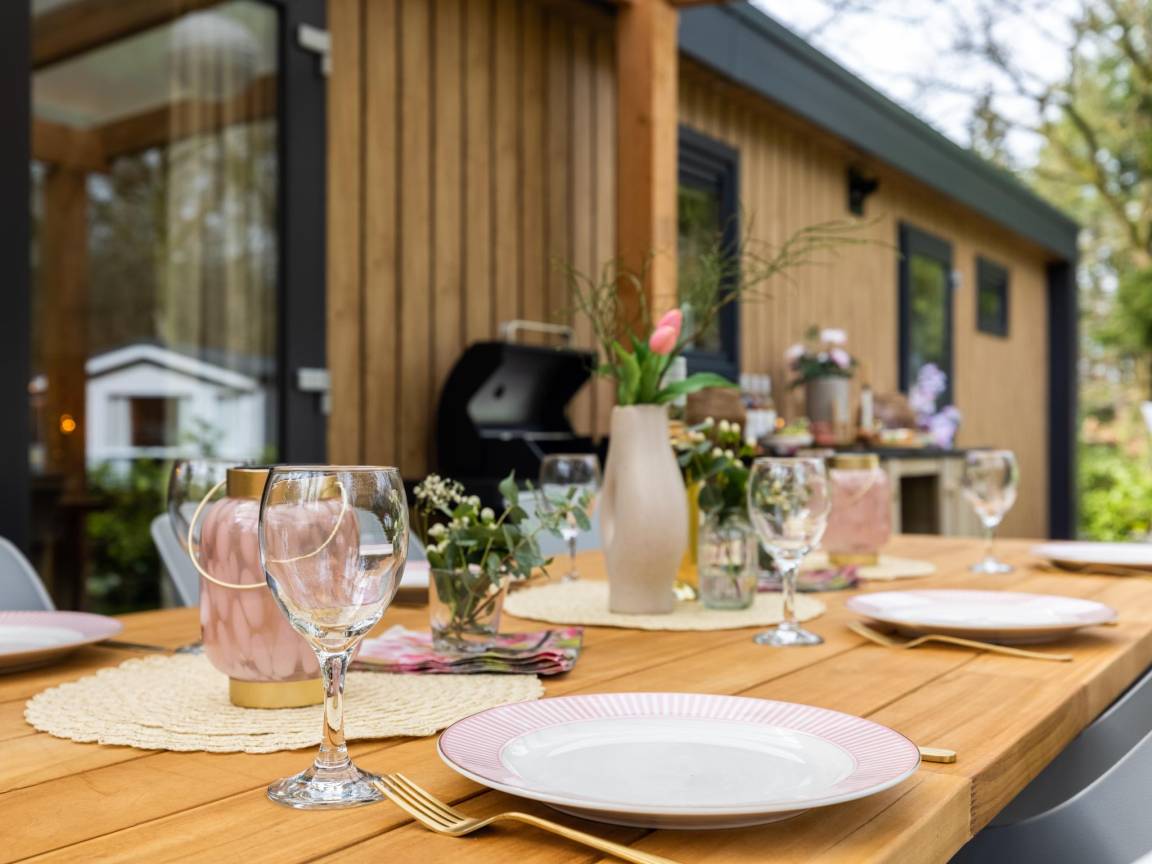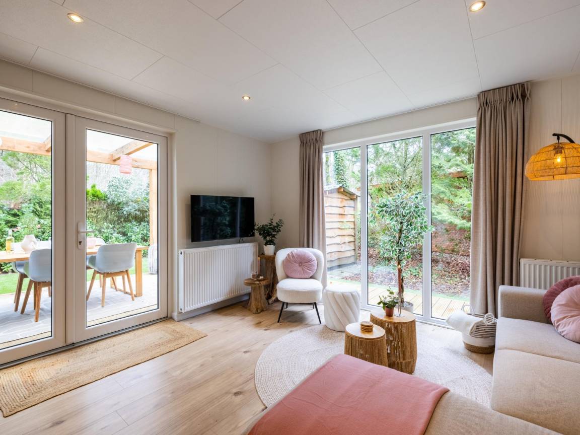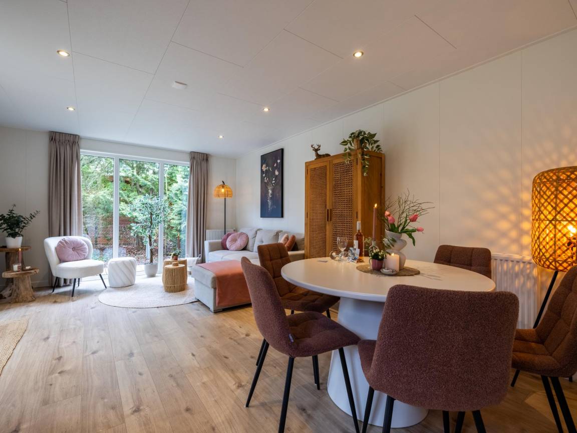 Hausbeschreibung : Stimmungsvol und luxuriöses Ferienhaus mitten in der Natur. Entspannen Sie auf der geräumigen überdachten Terrasse mit Außenküche, BBQ, Lounge und Liegen, mit Blick auf den Wald. Drinnen erwartet Sie ein gemütliches Wohnzimmer mit offener Küche, Klimaanlage, 2 Schlafzimmern und einem Schlafsofa. Die Betten sind bezogen und die frischen Handtücher liegen bereit. Kurz gesagt, der Genuss Ihres Urlaubs kann sofort beginnen.