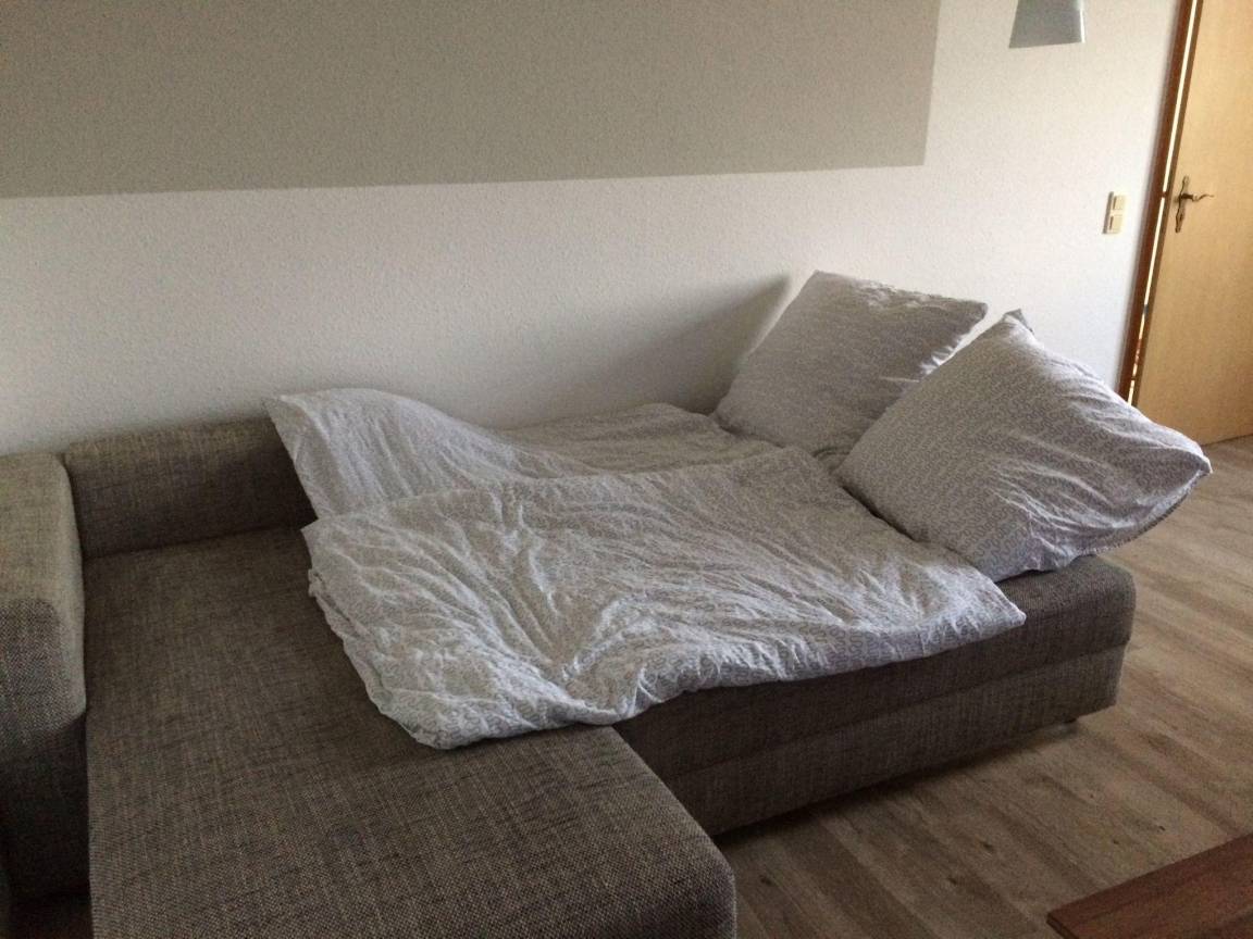 Die 43qm große Ferienwohnung hat ein Schlafzimmer mit einem Doppelbett und einer Schlafcouch, wo zusätzlich noch 2 Personen Platz zum Schlafen finden.