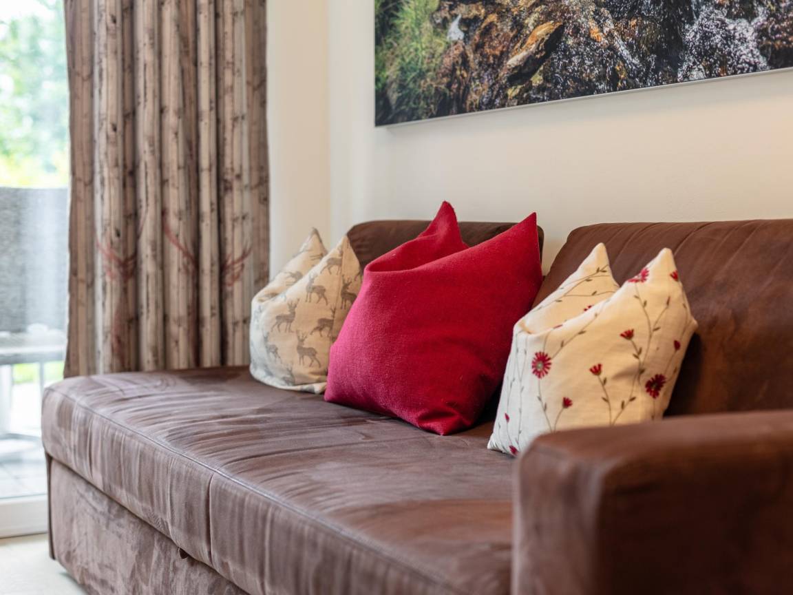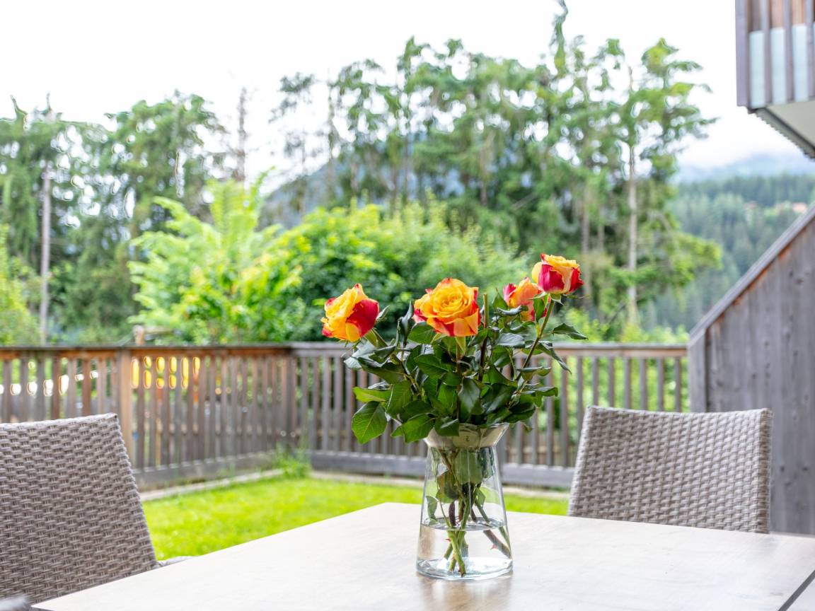 Hausbeschreibung : Wohnen Sie in dieser wunderschön eingerichteten Wohnung im alpinen Stil im ersten Stock, mit einer großen Terrasse für ultimativen Entspannungsgenuss. Parken Sie einfach unterhalb des Komplexes und erreichen Sie die voll ausgestattete Wohnung im Haus. Nach einem Tag voller Bergabenteuer können Sie sich in Ihrer eigenen Sauna entspannen. Mit zwei Schlafzimmern und zwei Bädern ist dies der ideale Platz für 4 bis 6 Personen. Erleben Sie einen unvergesslichen Urlaub in dieser Luxuswohnung!