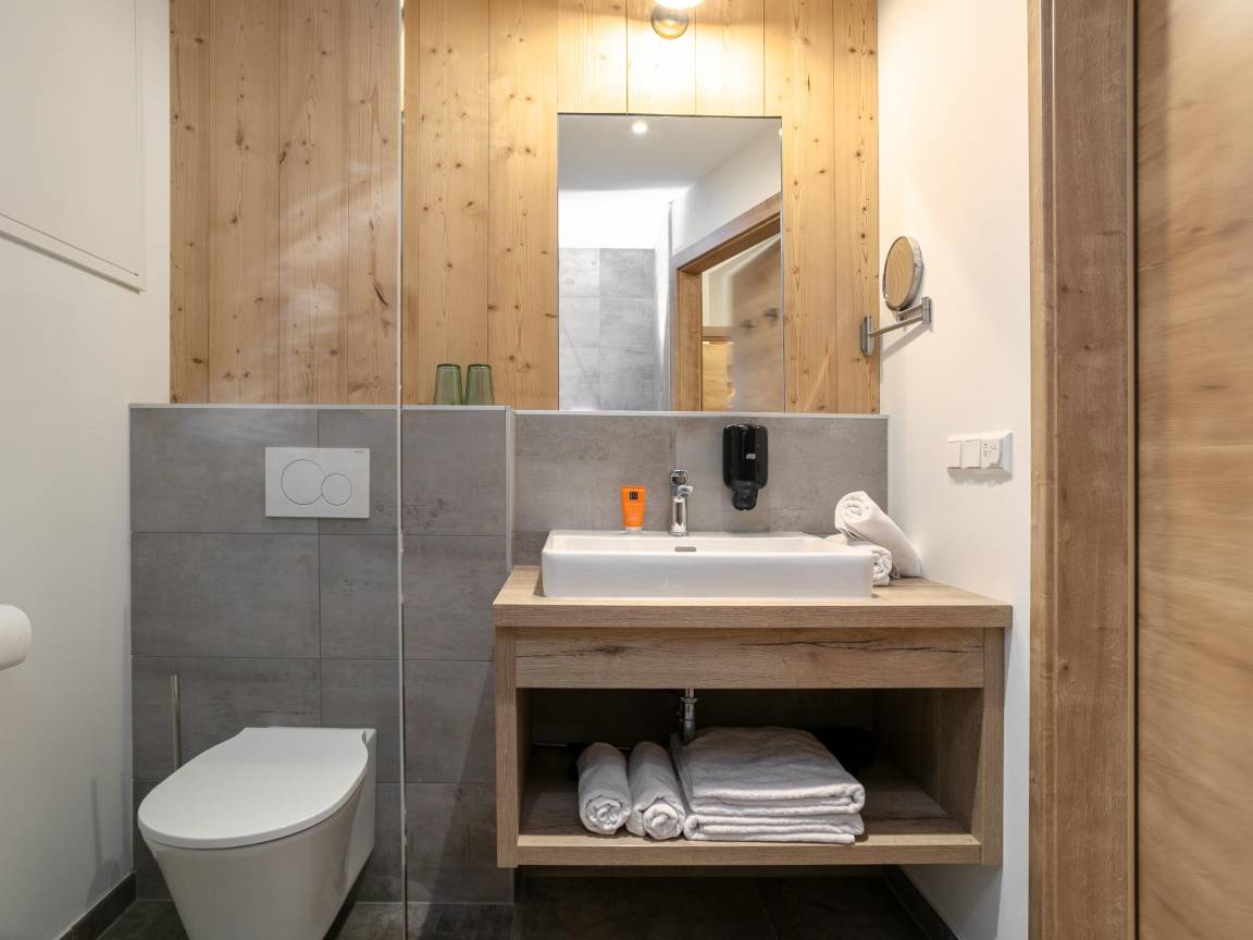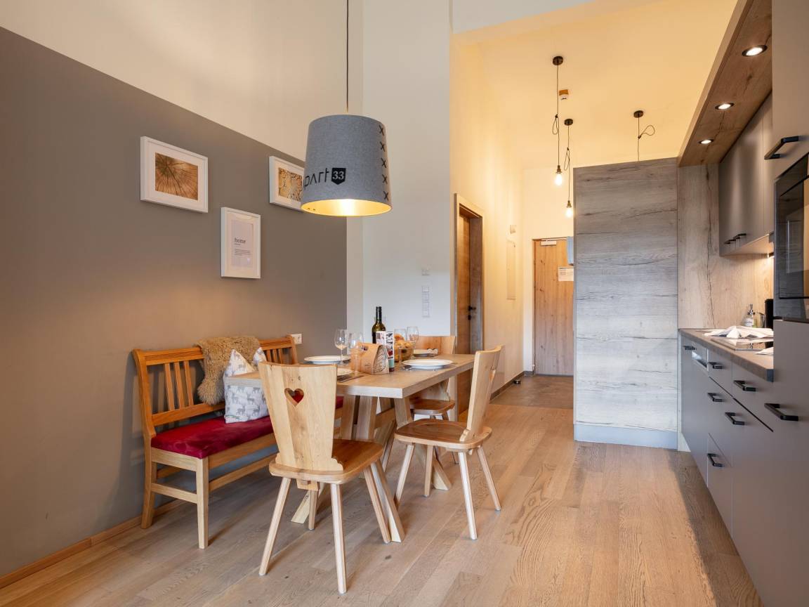 Hausbeschreibung : Diese Unterkunft verfügt über 35 Apartments in zwei Gebäuden. Ihr Auto parken Sie unter den Gebäuden und erreichen Ihr Apartment von innen. Das im Alpenstil eingerichtete Apartment befindet sich im dritten Stockwerk und verfügt über einen großen Balkon (an einer Durchgangsstraße gelegen). Die Küche ist komplett ausgestattet und nach einem aktiven Tag in den Bergen können Sie in der eigenen Sauna entspannen. Mit zwei Schlafzimmern und zwei Badezimmern ist es ideal für 4 bis 6 Personen!
