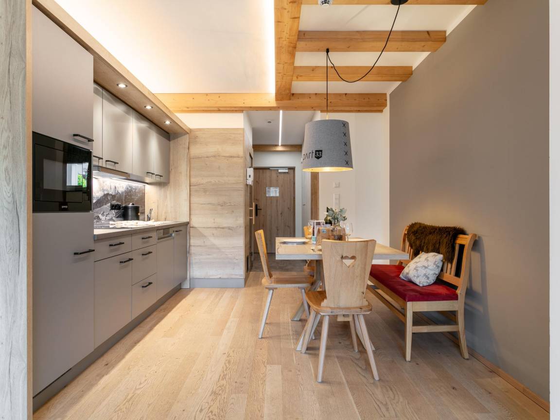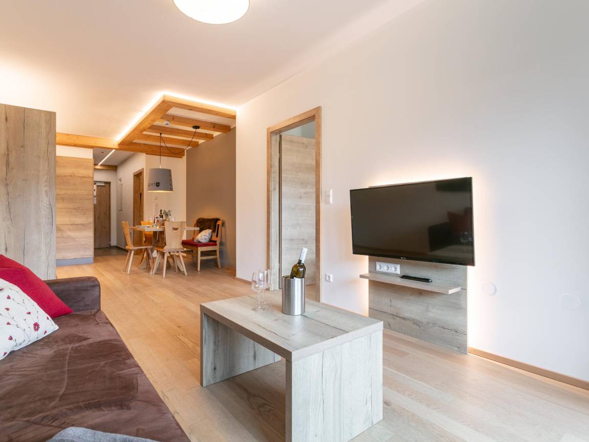 Hausbeschreibung : Erleben Sie Luxus und Stil in dieser Alpenwohnung, eine von 35 Unterkünften, die sich auf zwei Gebäude verteilen. Sie wohnen in der ersten Etage mit einer großen Terrasse und parken Ihr Auto mühelos unter dem Gebäude, von wo aus Sie Ihre Wohnung über einen inneren Durchgang erreichen. Die Küche und die private Sauna bieten ultimativen Komfort und Entspannung nach einem aktiven Tag in den Bergen. Mit zwei Schlafzimmern und zwei Bädern ist dies der perfekte Ort für 4 bis 6 Personen