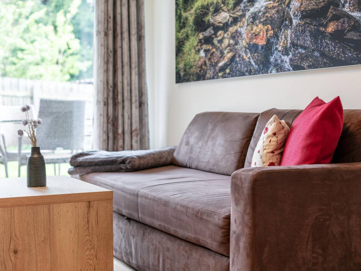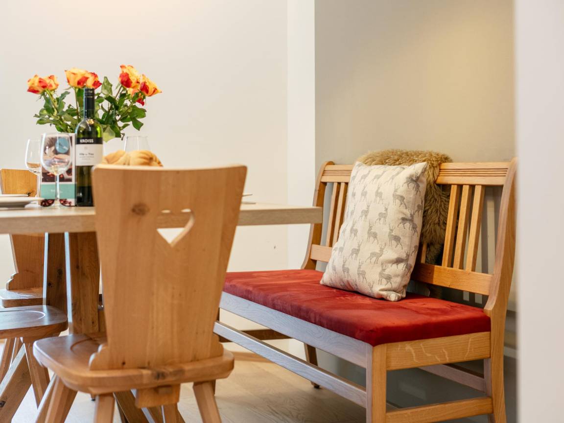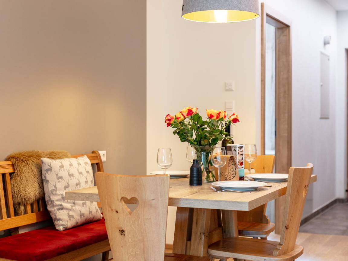 Saunaraum(alleinige Nutzung), Skiabstellraum(Gemeinschaftliche Nutzung mit anderen Gästen), Heizung(Fußbodenheizung), Terrasse, Gartenmöbel, 1x Parkplatz, Aufzug, 1x Kinderbett (ohne Bettwäsche)(gegen Gebühr), 1x Hochstuhl(gegen Gebühr)