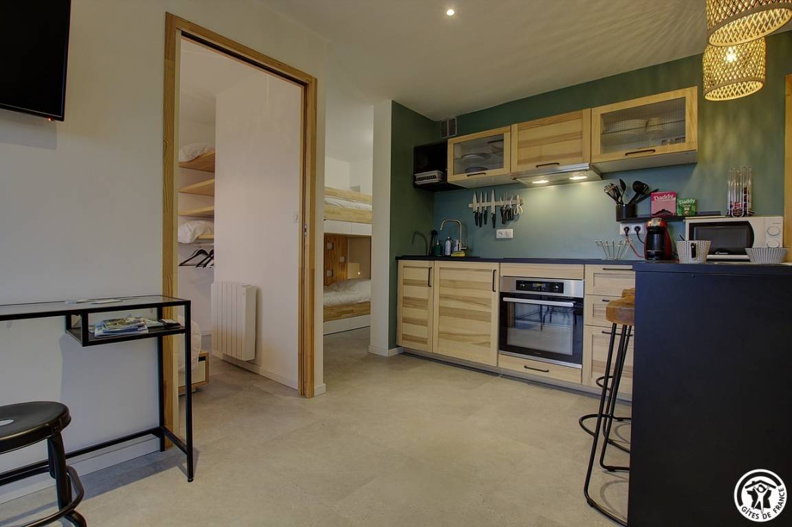 Am Fuße der Pisten befindet sich das L'Échappée Belle gîte im Erdgeschoss einer Residenz. Es bietet Platz für bis zu 4 Personen mit seinem Schlafzimmer und Schlafbereich. Der Eingang erfolgt in der Verlängerung der für die Wohnungen gemeinsamen Eingangstür. Über einen separaten Eingang gelangen Sie in den Flur, der den Schlafbereich mit seinen zwei Etagenbetten, eine zum Essbereich offene ausgestattete Küche und seinen Ruhebereich umfasst. Ein kleines Schlafzimmer (6 m²) hat ein Doppelbett, mit Stauraum. Schließlich vervollständigt ein Badezimmer mit WC diese Immobilie. Die Wohnung verfügt über einen Balkon mit Gartenmöbeln, Grill für sonnige Tage und einen Raum im Keller für die Skiausrüstung und andere Ausrüstung, die Sie während Ihres Aufenthalts aufbewahren können. Das Plus dieses Ferienhauses: alles ist im Mietpreis enthalten - Betten sind bei der Ankunft bezogen, Handtücher werden gestellt und Nebenkosten sind inklusive. Elektroheizung. Sammelparkplatz. Viele Aktivitäten im Winte