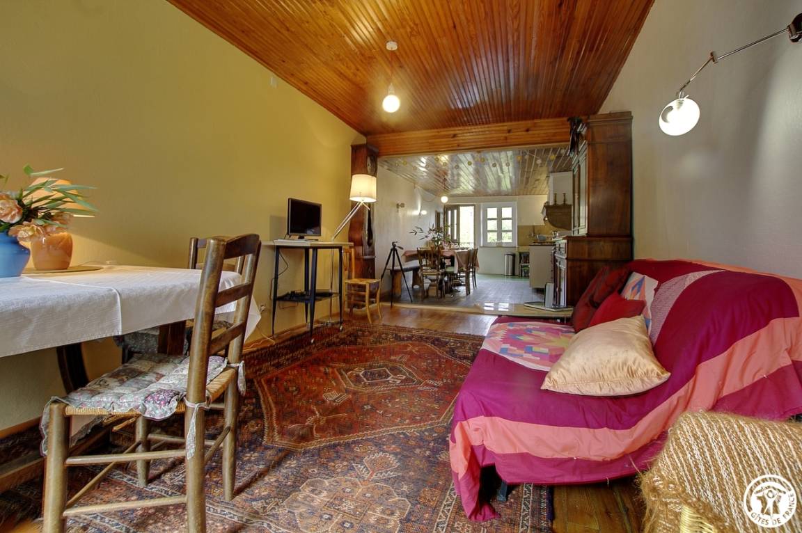 Im Herzen des Weilers Soiriat liegt das Gîte Maison Joly, ein typisches Steinhaus von Revermont mit Treppenhaus und Scheunengewölbe. Es bietet Platz für bis zu 5 Personen. Vom Innenhof (mit Parkplatz) und über die Steintreppe gelangen Sie in ein großes, durchgehendes Wohnzimmer, das aus einer funktionalen Küche, dem Esszimmer und einem nach Osten ausgerichteten Ruhebereich besteht. Von diesem Wohnzimmer aus und über eine kleine Treppe genießen Sie den Garten und eine mit Möbeln ausgestattete Terrasse. In der Erweiterung des Wohnzimmers führt ein Flur zum Badezimmer mit WC und Stauraum, und eine Stufe tiefer befindet sich das Schlafzimmer mit 2 Einzelbetten, die auf Wunsch zusammengestellt werden können (80x200). Über eine Holztreppe gelangen Sie in ein zweites Schlafzimmer, das mit einem Doppelbett (140x200) und einem Einzelbett (90x190) ausgestattet ist. Die beiden Schlafzimmer liegen im Osten, auf der Gartenseite. Im Erdgeschoss beherbergt eine Scheune Fahrräder und eine Werkstatt. D