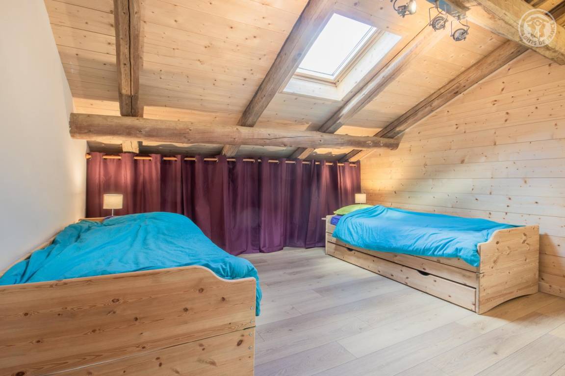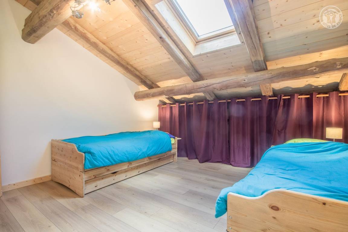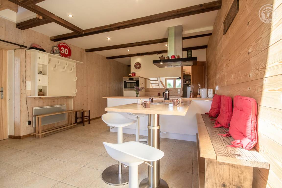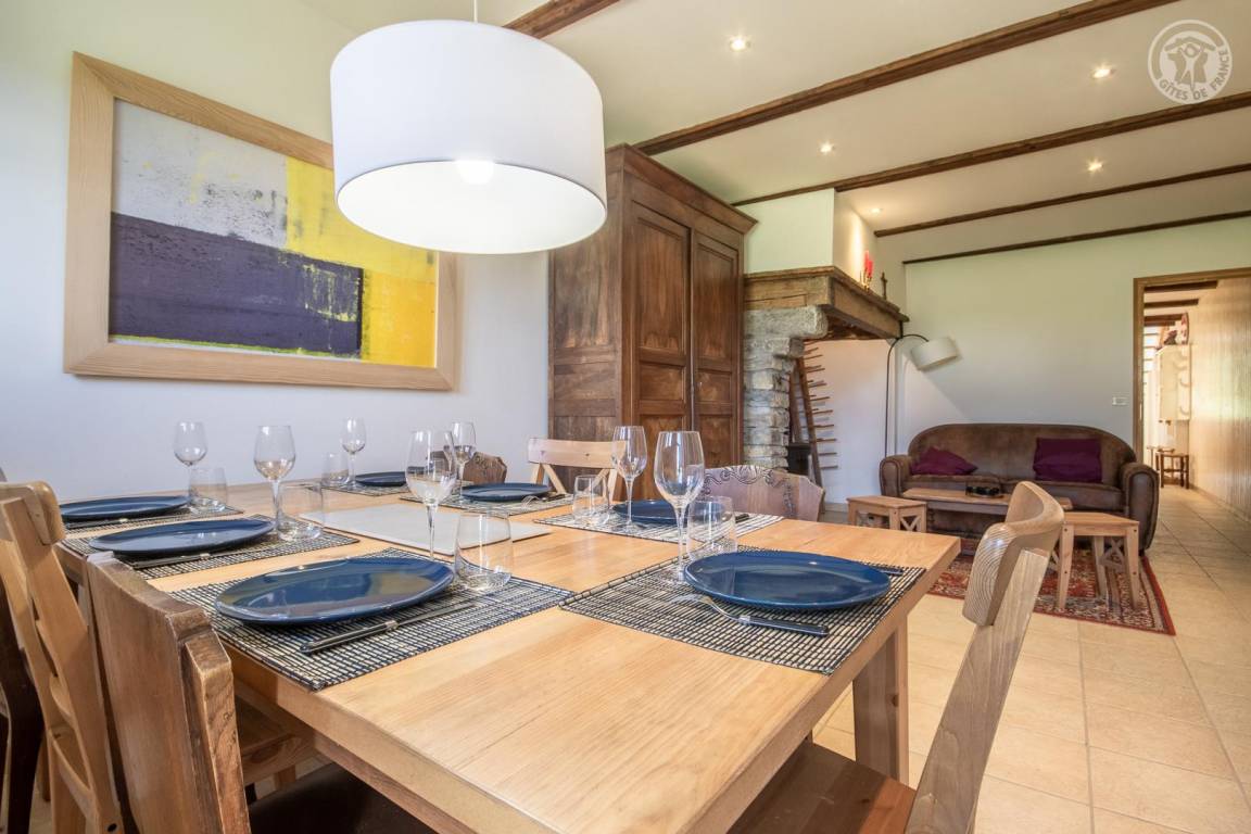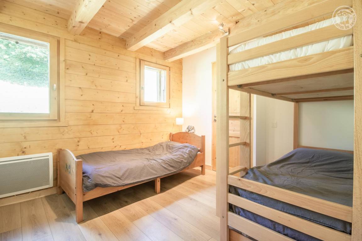 Gite auf 2 Ebenen im Familienchalet, bestehend aus 2 Unterkünften und 1 Gite (73G132298 für 8 Personen). Erdgeschoss: Wohnküche (Kombi-Mikrowelle), Sitzecke (kein Fernseher), Badezimmer (Badewanne), separates WC. 1. Etage: 3 Schlafzimmer (1 Doppelbett 160x190 cm / 3 Einzelbetten 90x190 cm, davon 1 Etagenbett / 3 Einzelbetten 90x190 cm, davon 1 Ausziehbett), ein Badezimmer (Dusche und WC). Gemeinsam genutzte Terrasse mit der Unterkunft neben dem Chalet.