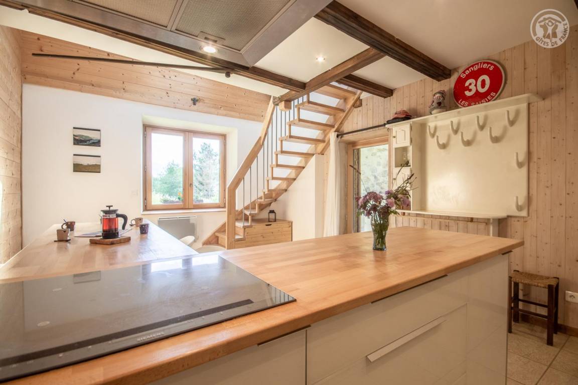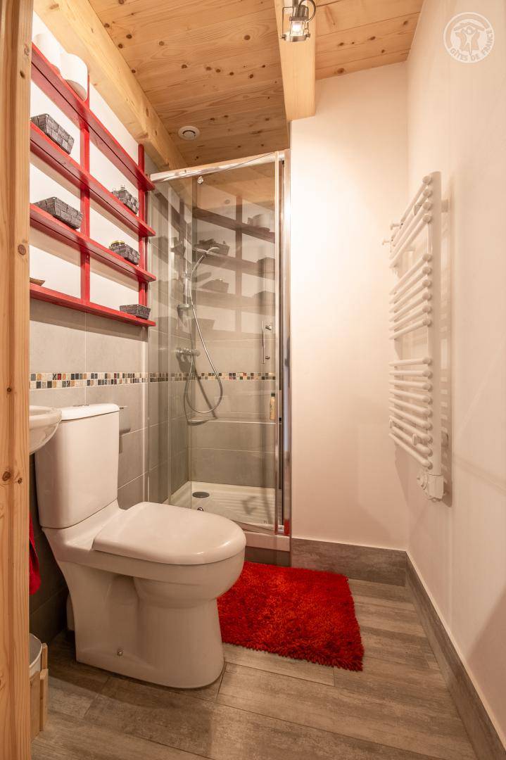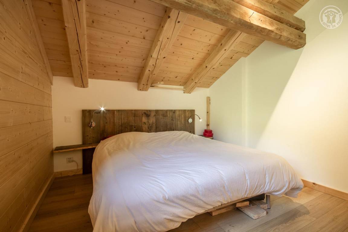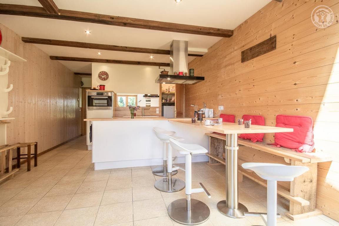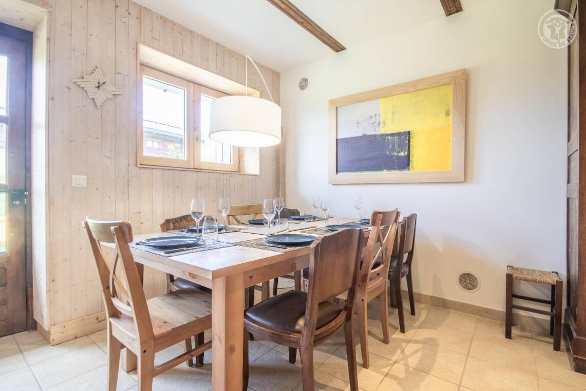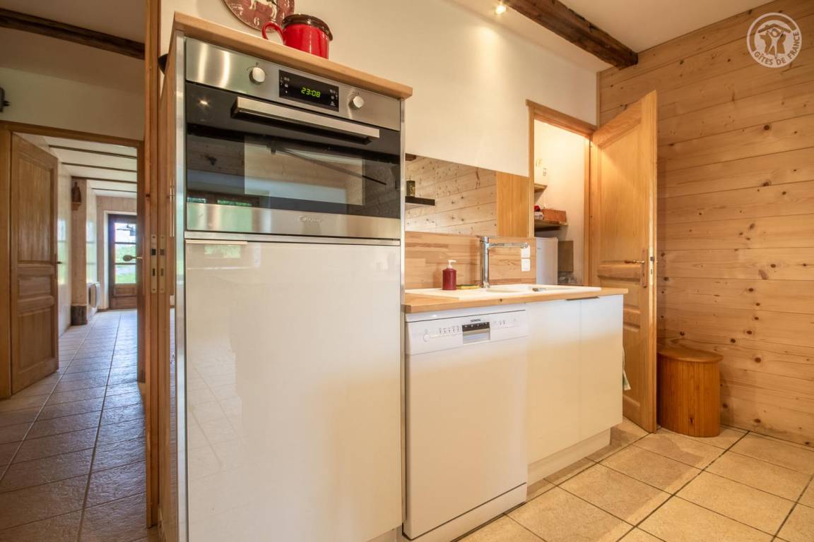 Gite auf 2 Ebenen im Familienchalet, bestehend aus 2 Unterkünften und 1 Gite (73G132298 für 8 Personen). Erdgeschoss: Wohnküche (Kombi-Mikrowelle), Sitzecke (kein Fernseher), Badezimmer (Badewanne), separates WC. 1. Etage: 3 Schlafzimmer (1 Doppelbett 160x190 cm / 3 Einzelbetten 90x190 cm, davon 1 Etagenbett / 3 Einzelbetten 90x190 cm, davon 1 Ausziehbett), ein Badezimmer (Dusche und WC). Gemeinsam genutzte Terrasse mit der Unterkunft neben dem Chalet.