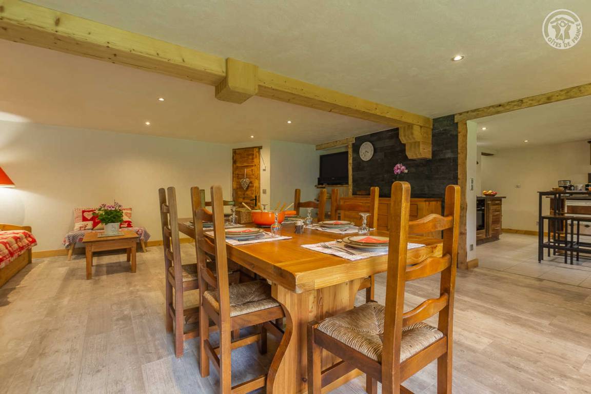 Gîte im Erdgeschoss des Hauses der Eigentümer (separater Eingang) und auf einer Ebene (Zugang über den abfallenden Garten): Küche, Wohnzimmer (2 Einzelausziehbetten 90x190 cm), 1 Schlafzimmer (1 Doppelbett 140x190 cm) , 1 zum Wohnraum offene Blindnische (1 Doppelbett 140x190 cm), Badezimmer (Dusche), separates WC. Privater Parkplatz auf der anderen Straßenseite. Gemeinsamer Garten mit den Eigentümern. Kiesterrasse. Skifahren Hauteluce 1650 Val-Joly / Les Contamines Monjoie auf 100m,