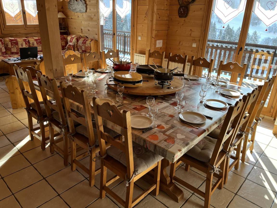 „Table carrée avec service plat tournant, très conviviale pour une groupe de 12 personnes. Chalet très agréable et bien situé pour la rando raquettes même avec peu de neige. Local à matériel super surtout avec le système de chauffage et séchage des chaussures.“