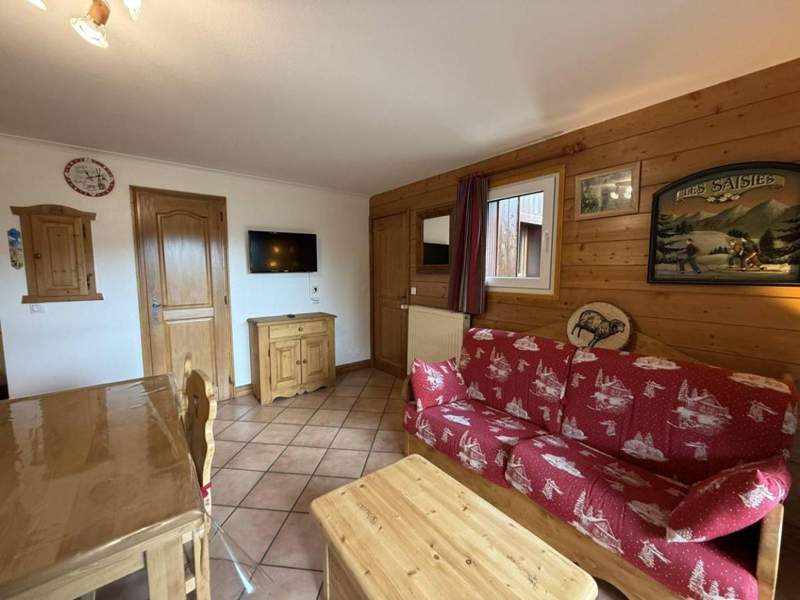 Die Residenz Le Village des Lapons C ist eine Residenz mit Aufzügen im Ferienort Les Saisies. Dieses kleine Gebäude im savoyischen Stil genießt eine außergewöhnliche Lage im Stadtteil La Chapelle. Es ist nur einen Steinwurf vom Wasserpark und der Bowlingbahn entfernt. Das Dorfzentrum und die Geschäfte befinden sich 700 Meter vom Gebäude entfernt. Genießen Sie einen beheizten Innenpool. Fläche von ungefähr 40 m². 1te Etage. Orientierung : Ost. Blick skipisten und Berg. Wohnzimmer mit Klappschlafcouch, TV. 2 Schlafzimmer mit 2 zwei Einzelbetten (80). mit Wasserkocher, Kaffeemaschine, kleiner Backofen mit Mikrowellenfunktion, Toaster, Geschirrspülmaschine, Glaskeramikkochfelder. Waschräume. Badezimmer. separates WC. Balkon.