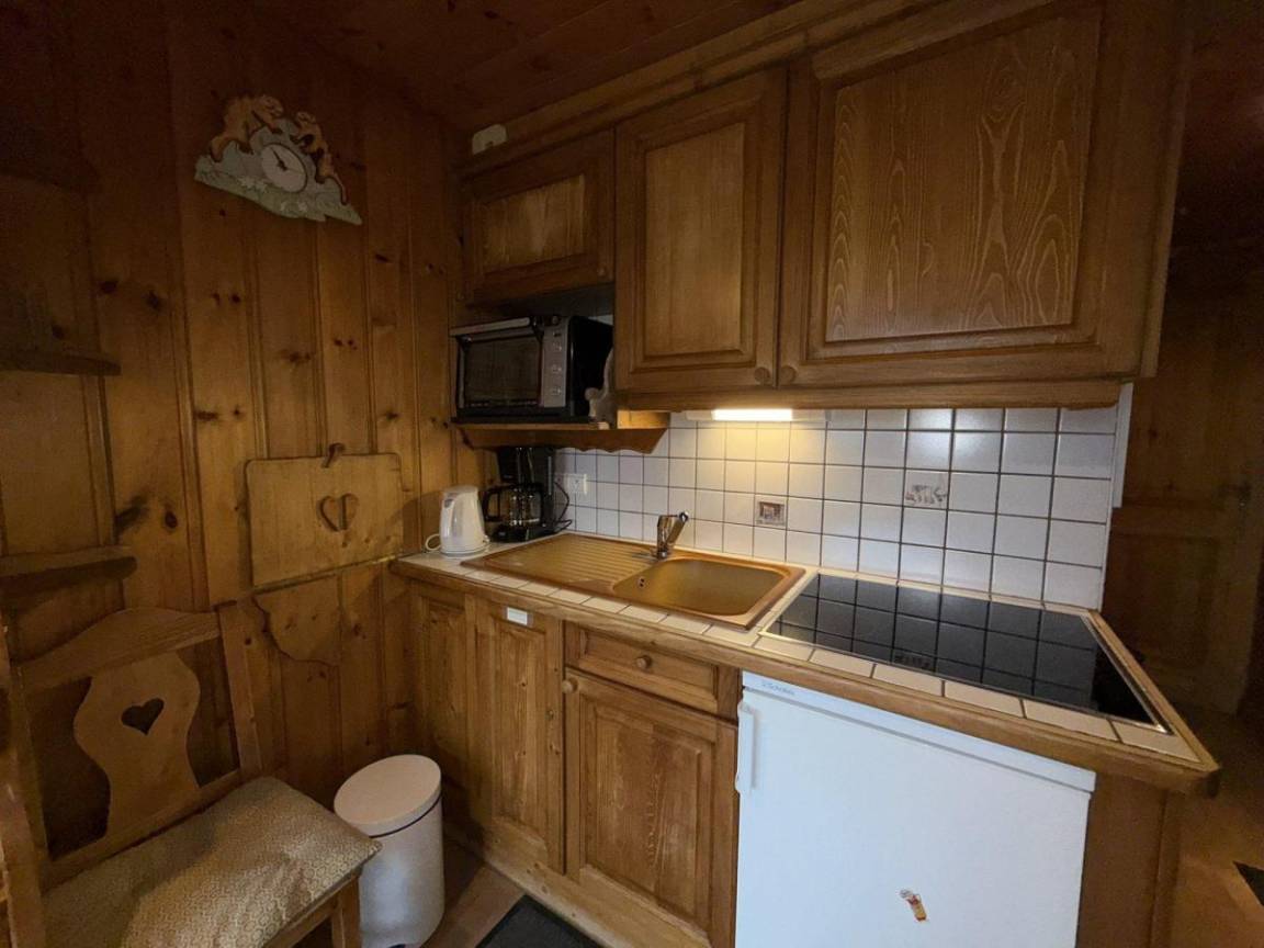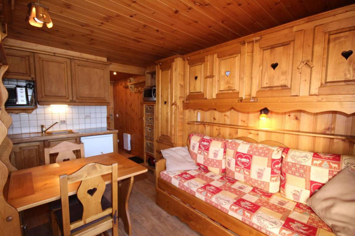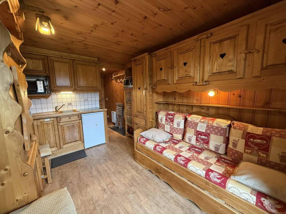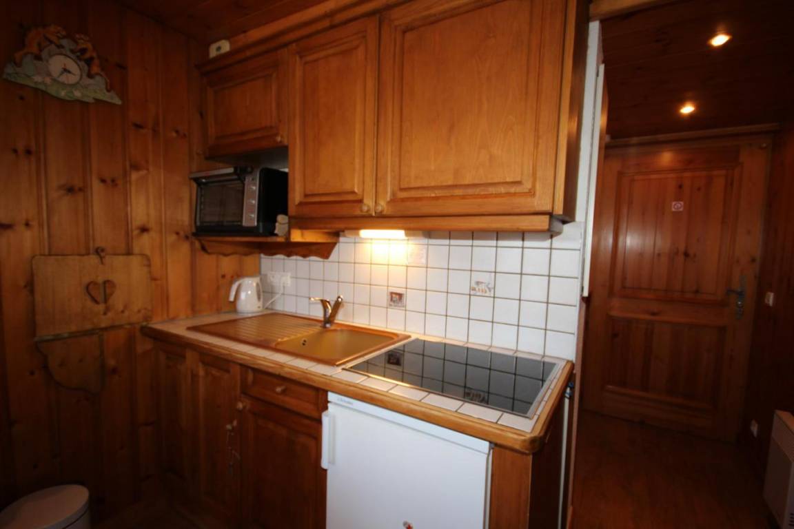 Fläche von ungefähr 14 m². 1te Etage. Orientierung : West. Blick skipisten ODER Blick berg (Mont bisanne). Wohnzimmer mit einfache Klappschlafcouch, TV. Kochnische mit Wasserkocher, Kaffeemaschine, Backofen, Mikrowellenherd, 4 Glaskeramikkochfelder. Waschräume mit Dusche, WC.